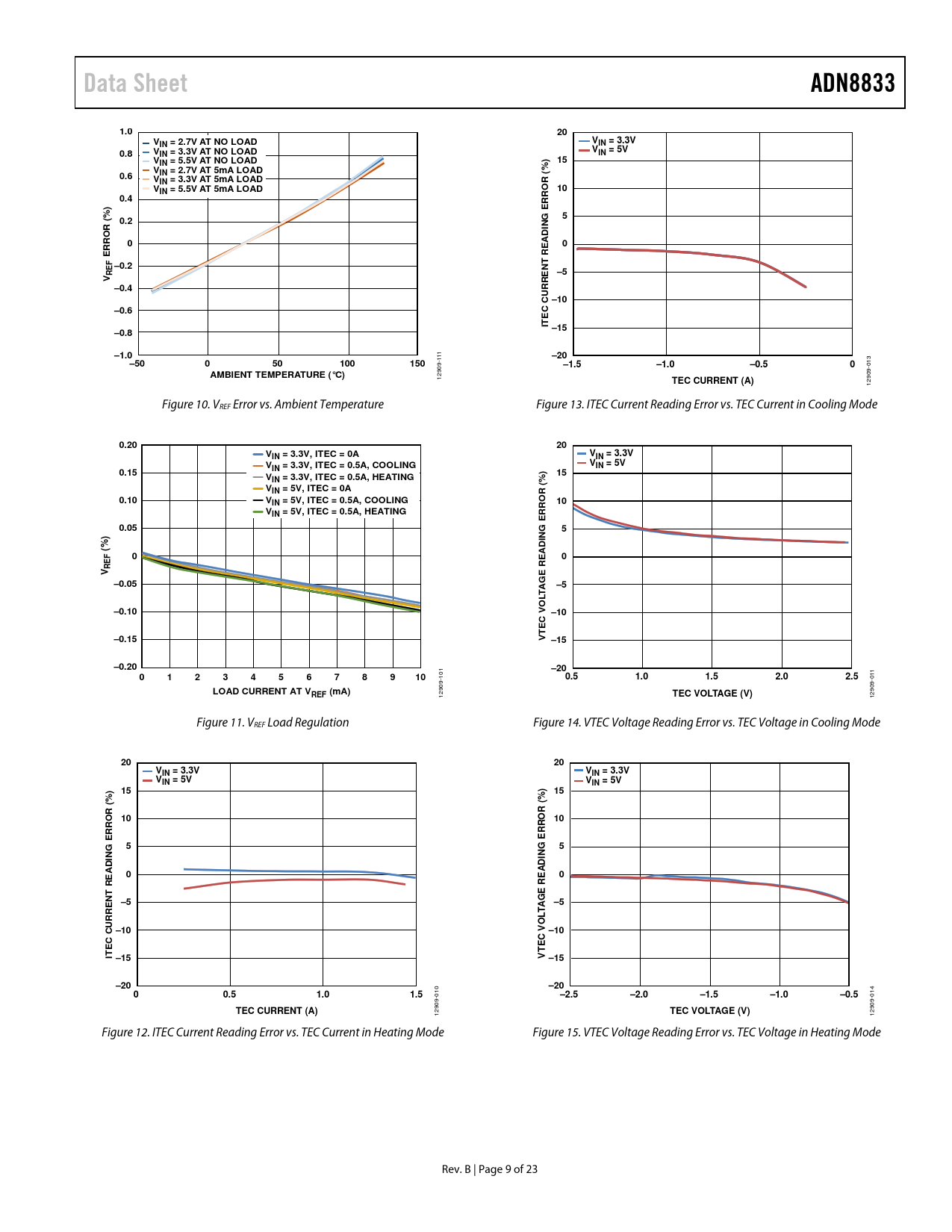 12909- Figure 11. VREF Load Regulation Figure 14. VTEC Voltage Reading Error vs. TEC Voltage in Cooling Mode