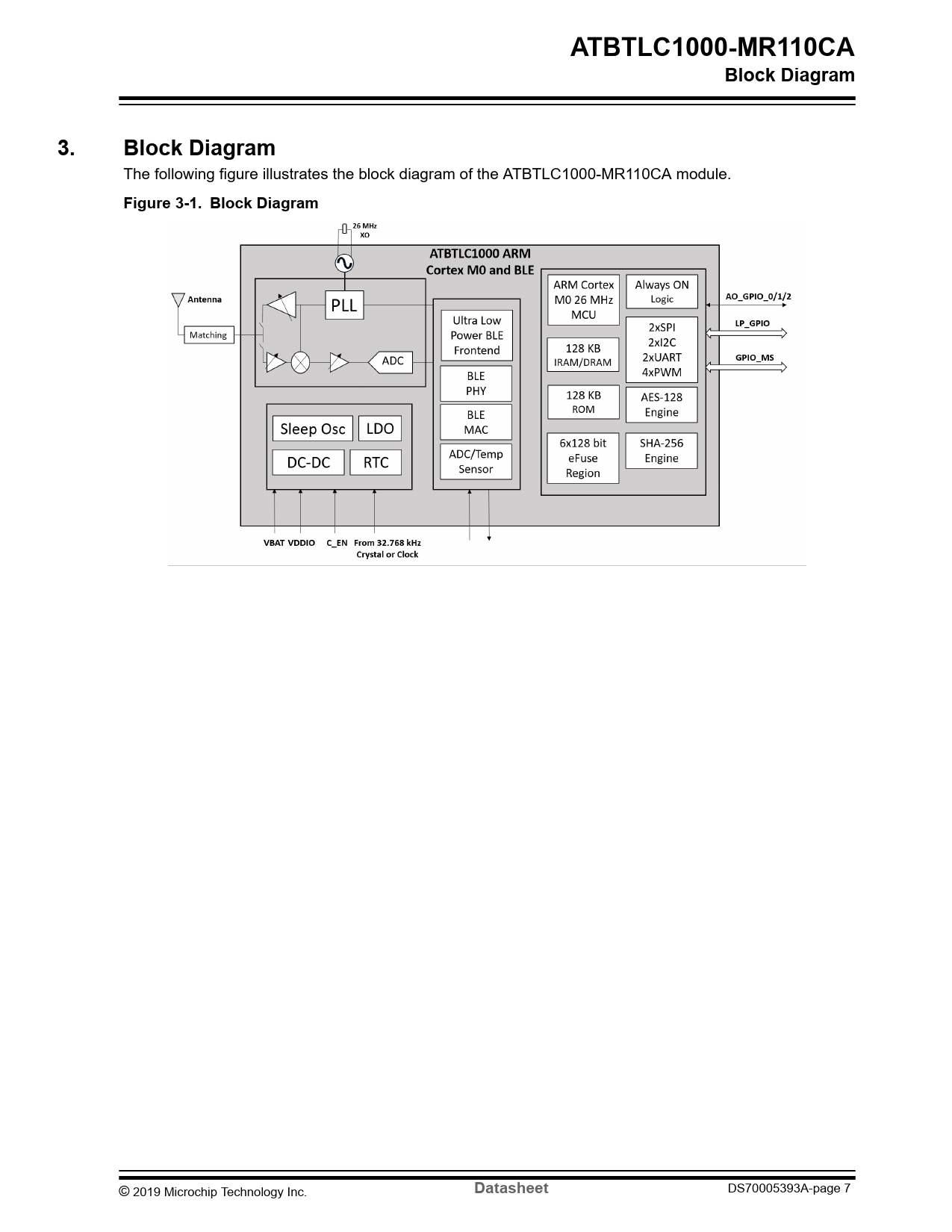 | Seiten / Seite | 44 / 7 — ATBTLC1000-MR110CA. Block Diagram. Figure 3-1. Block Diagram. Datasheet |