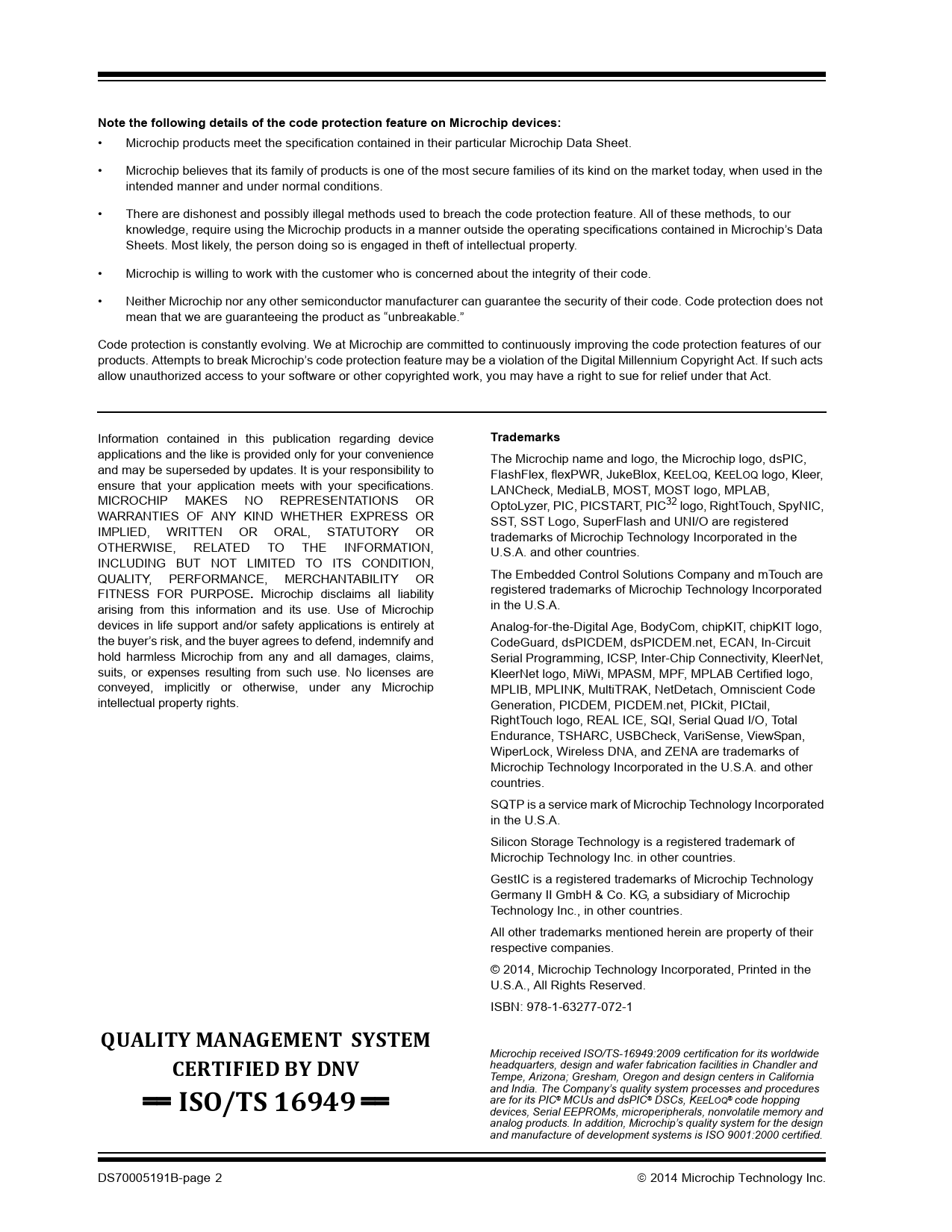 Note the following details of the code protection feature on Microchip devices:. Trademarks. QUALITY MANAGEMENT SYSTEM