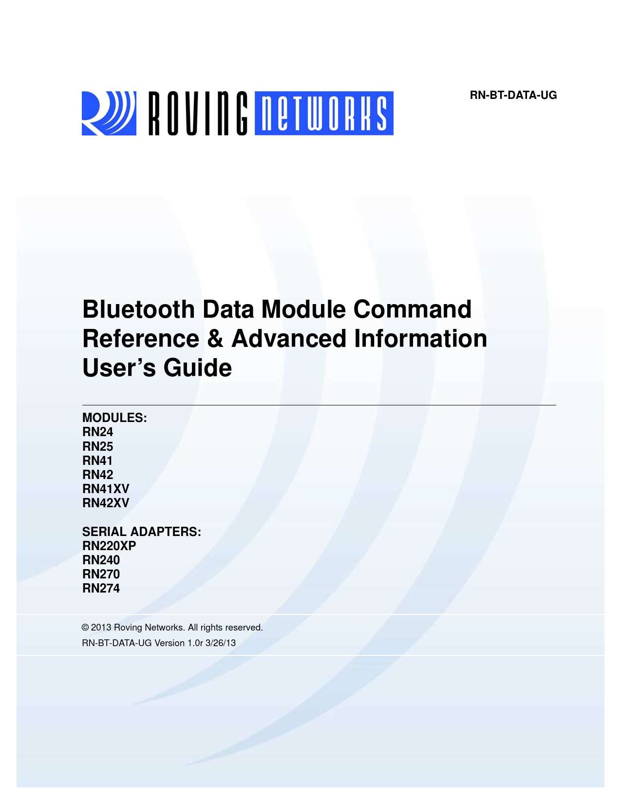 RN-BT-DATA-UG. Bluetooth Data Module Command Reference & Advanced Information User’s Guide
