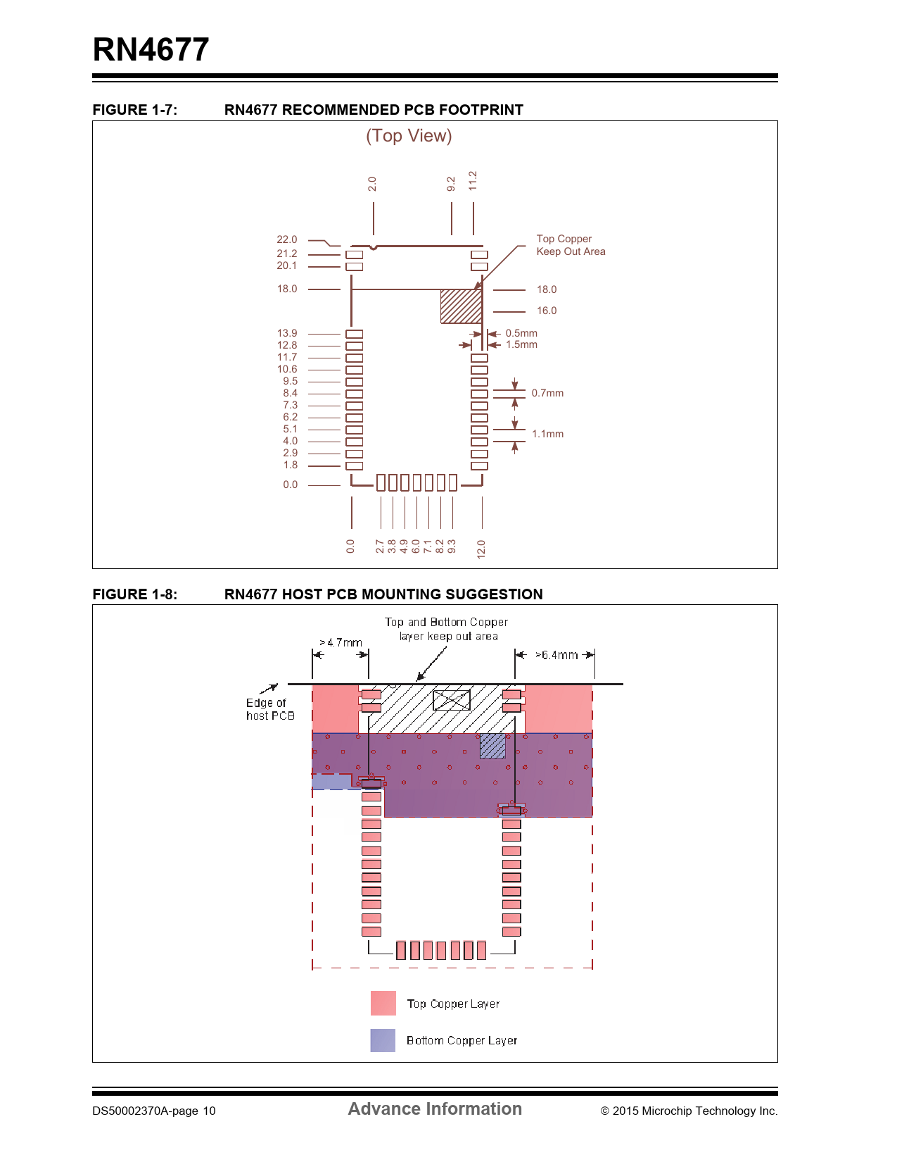 RN4677. FIGURE 1-7:. RN4677 RECOMMENDED PCB FOOTPRINT. FIGURE 1-8:. RN4677 HOST PCB MOUNTING SUGGESTION. Advance Information