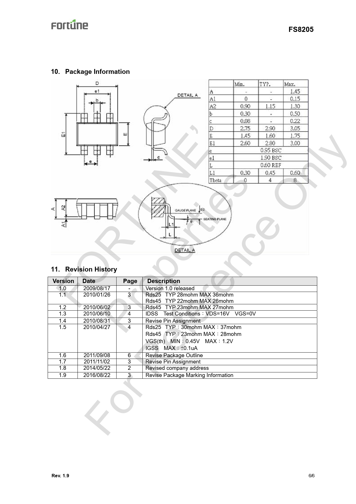 FS8205 FO RT. r R ro U. ef pe NE. er rti. en es. y 10. Package Information 11. Revision History. Version. 1.0. 1.1. 1.2. 1.3. 1.4