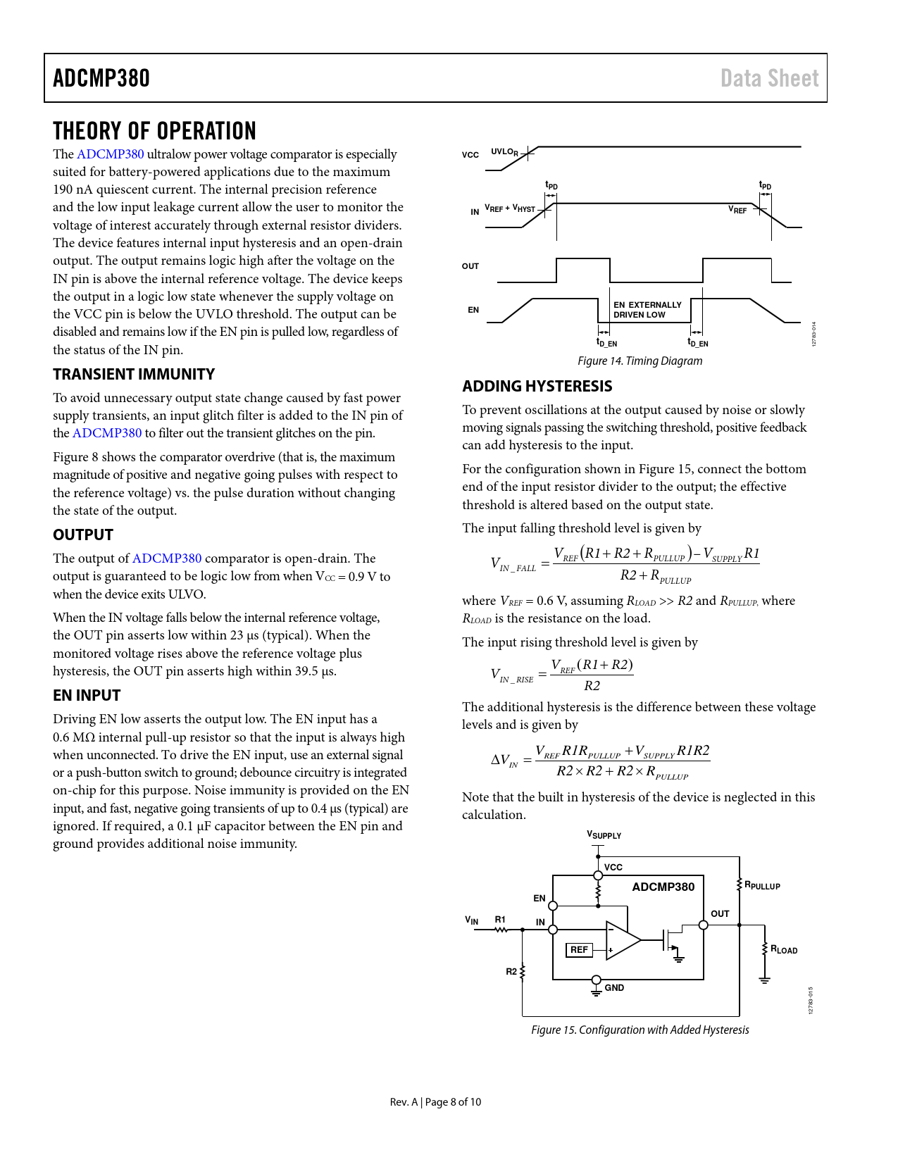 ADCMP380 Data Sheet THEORY OF OPERATION UVLO VCC tPD REF + VHYST VREF OUT EN EXTERNALLY DRIVEN LOW tD_EN TRANSIENT IMMUNITY