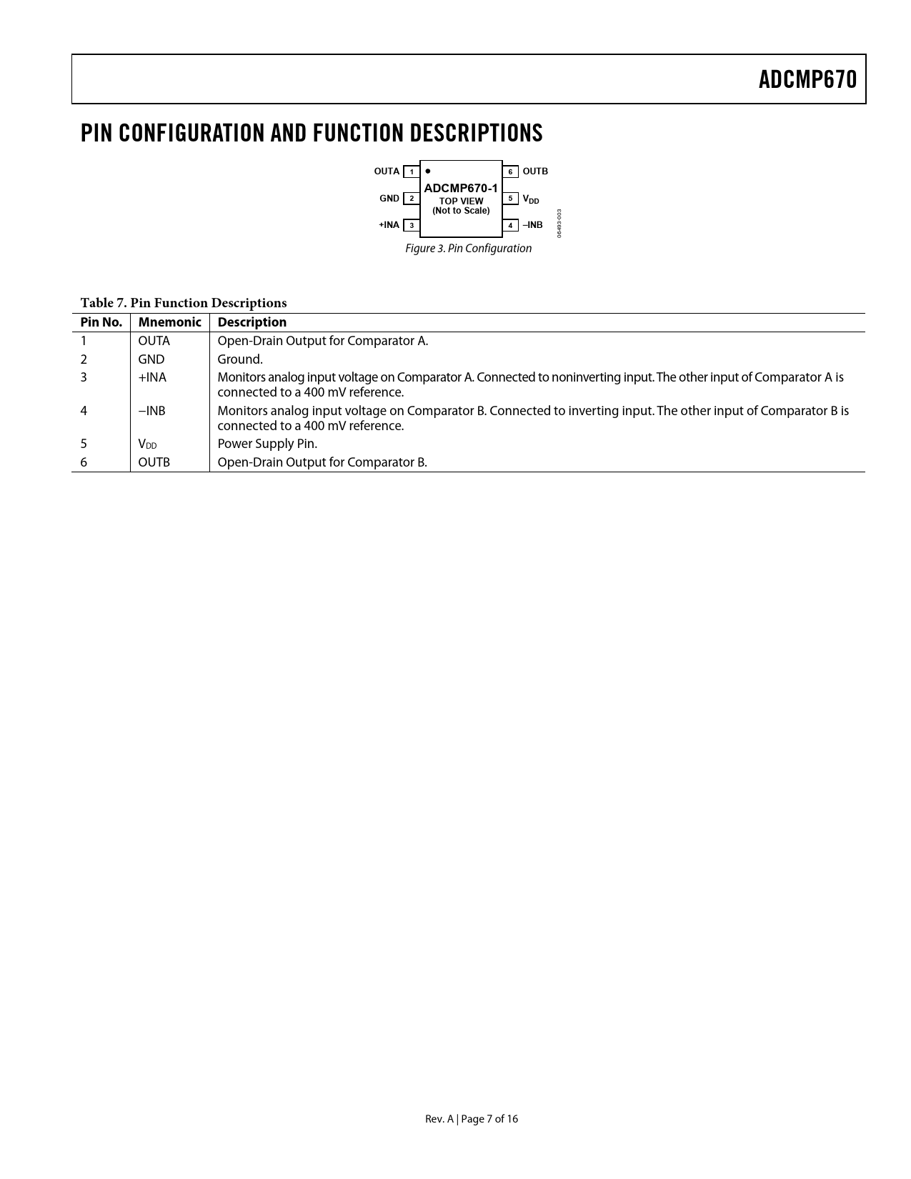 ADCMP670. PIN CONFIGURATION AND FUNCTION DESCRIPTIONS. OUTA. OUTB. ADCMP670-1. GND. TOP VIEW. (Not to Scale). +INA. –INB
