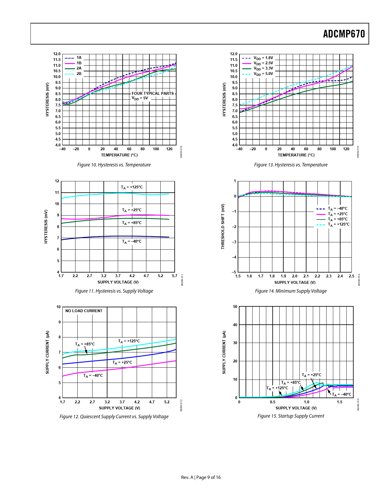 ADCMP670. 12.0. 11.5. VDD = 1.8V. 11.0. DD = 2.5V. 10.5. DD = 3.3V. 10.0. DD = 5.0V. 9.5. 9.0. 8.5. FOUR TYPICAL PARTS. 8.0. VDD = 5V. 7.5. 7.0. 6.5. 6.0. 5.5