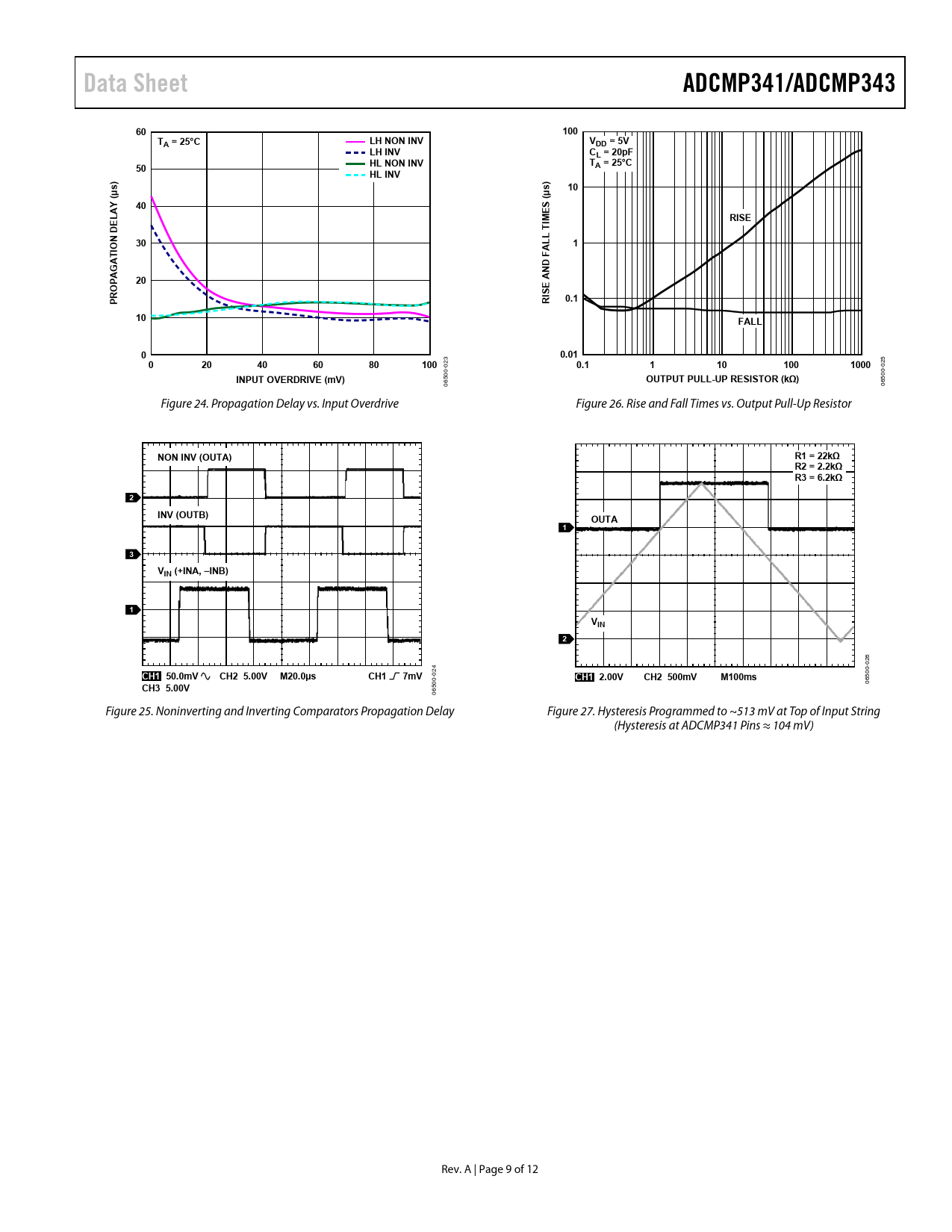 Data Sheet. ADCMP341/ADCMP343. 100. LH NON INV. A = 25°C. VDD = 5V. LH INV. CL = 20pF. HL NON INV. HL INV. RISE. N DE. D F. AG P. 0.1. FALL. 0.01. 1000
