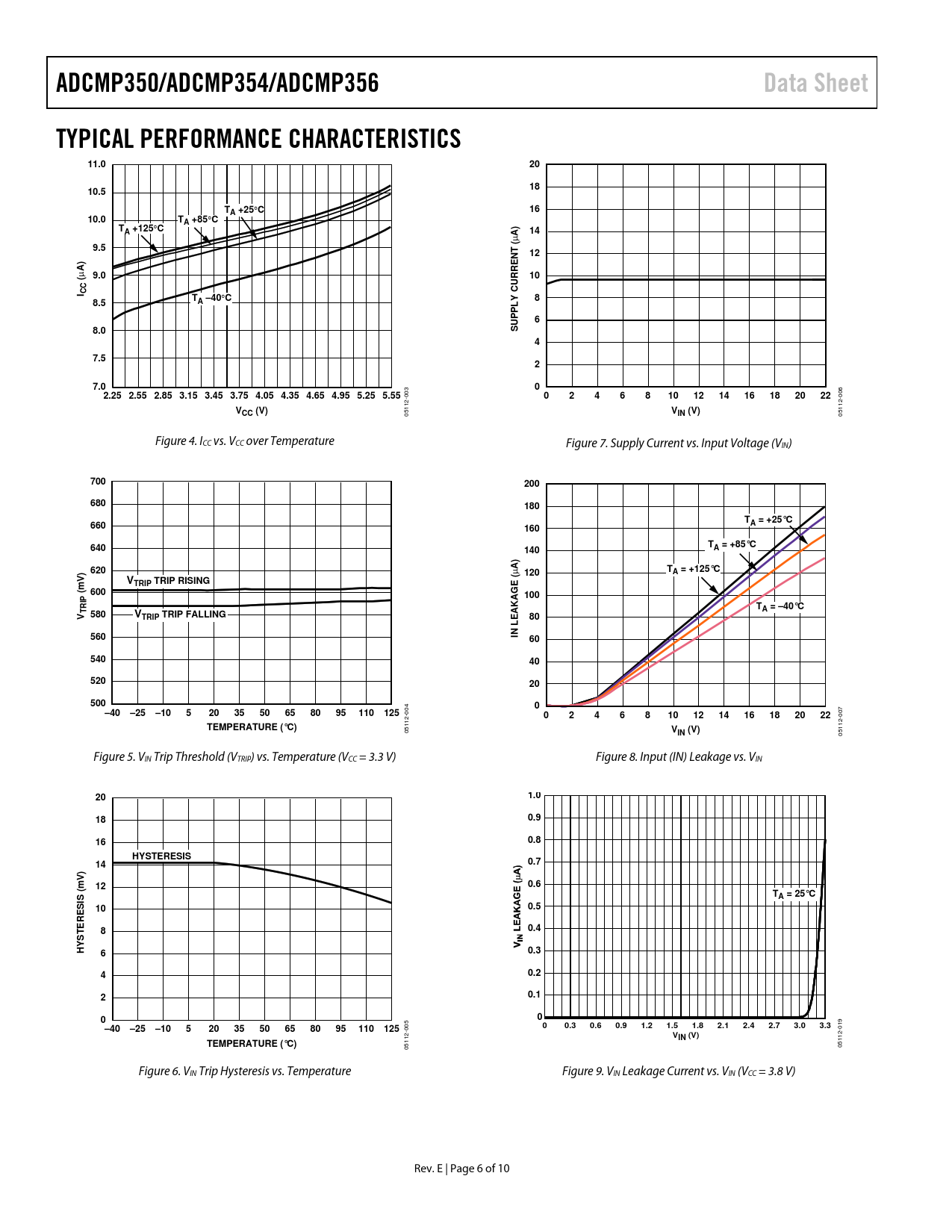 ADCMP350/ADCMP354/ADCMP356. Data Sheet. TYPICAL PERFORMANCE CHARACTERISTICS. 11.0. 10.5. A +25. 10.0. TA +85. TA +125. 9.5. A) 9.0. I CC. 8.5