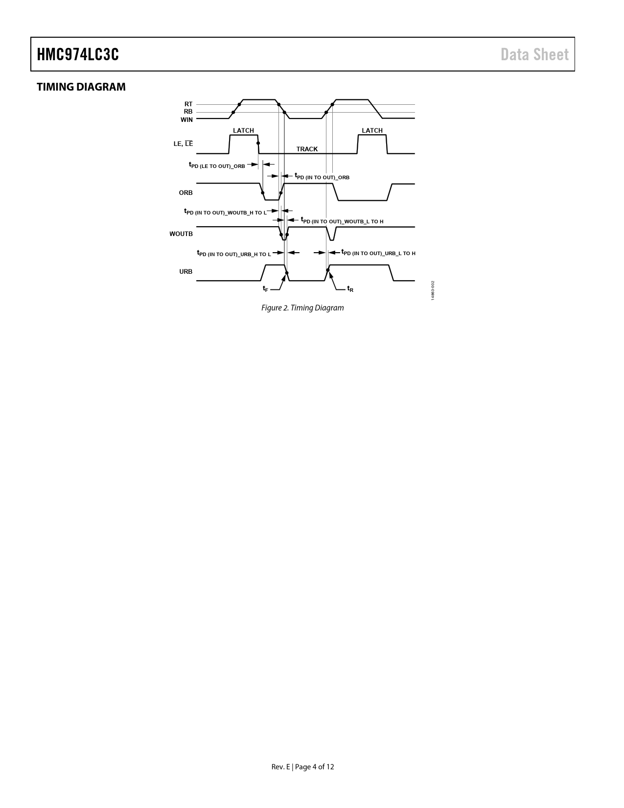 HMC974LC3C. Data Sheet. TIMING DIAGRAM. WIN. LATCH. LE, LE. TRACK. tPD (LE TO OUT)_ORB. tPD (IN TO OUT)_ORB. ORB