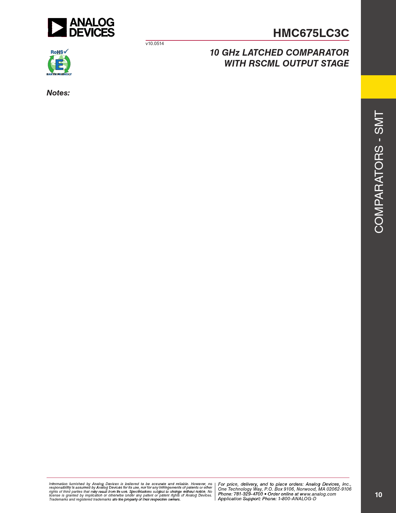 Seiten / Seite10 / 10 — HMC675LC3C. 10 GHz LATCHED COMPARATOR. WITH RSCML OUTPUT STAGE. Notes: