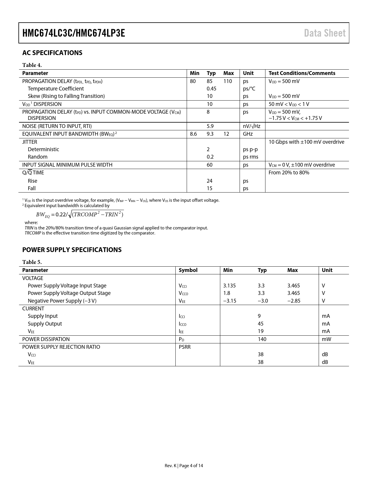 Seiten / Seite14 / 4 — HMC674LC3C/HMC674LP3E. Data Sheet. AC SPECIFICATIONS. Table 4. Parameter. …
