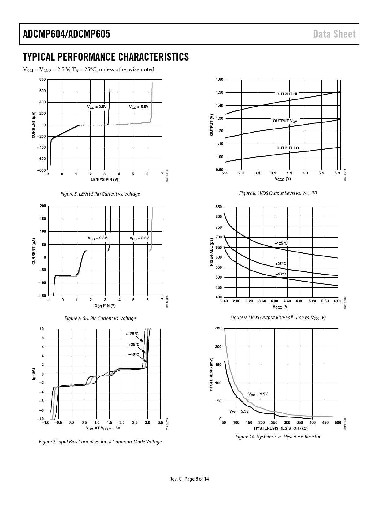 ADCMP604/ADCMP605. Data Sheet. TYPICAL PERFORMANCE CHARACTERISTICS. 800. 1.60. 600. 1.50. OUTPUT HI. 400. 1.40. CC = 2.5V. CC = 5.5V. 200. µ (