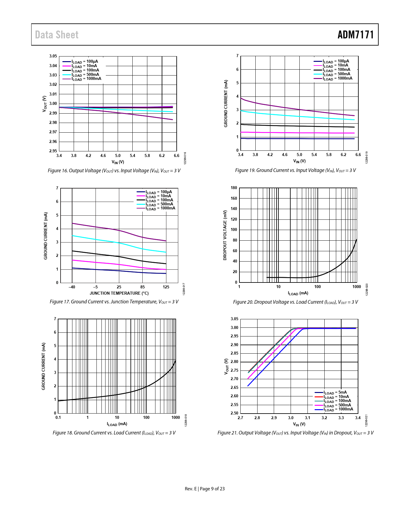 Data Sheet. ADM7171. 3.05. ILOAD = 100µA. 3.04. ILOAD = 10mA. ILOAD = 100mA. 3.03. ILOAD = 500mA. ILOAD = 1000mA. 3.02. (mA T. 3.01. N E
