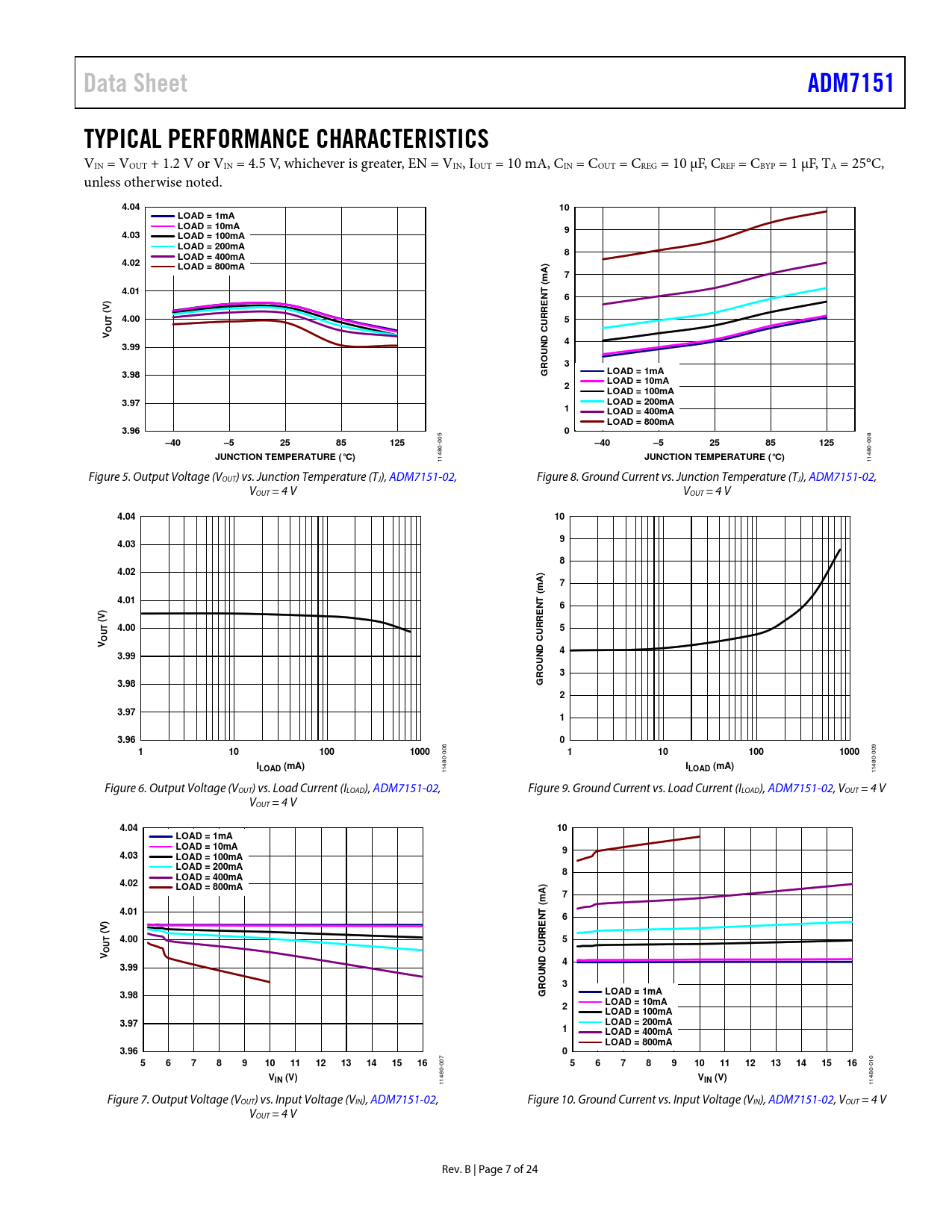Data Sheet. ADM7151. TYPICAL PERFORMANCE CHARACTERISTICS. 4.04. LOAD = 1mA LOAD = 10mA. 4.03. LOAD = 100mA LOAD = 200mA. LOAD = 400mA