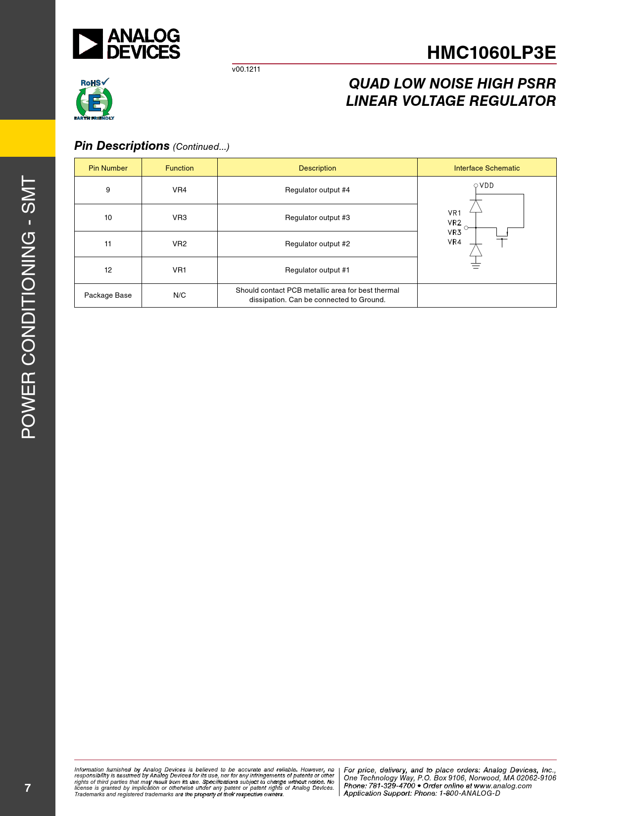 HMC1060LP3E. QUAD LOW NOISE HIGH PSRR. LINEAR VOLTAGE REGULATOR. Pin Descriptions