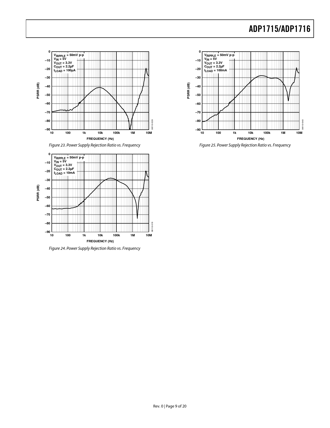 ADP1715/ADP1716. VRIPPLE = 50mV p-p. –10. VIN = 5V. VOUT = 3.3V. COUT = 2.2µF. –20. LOAD = 100µA. ILOAD = 100mA. –30. –40. RR (. –50. –60. –70. –80