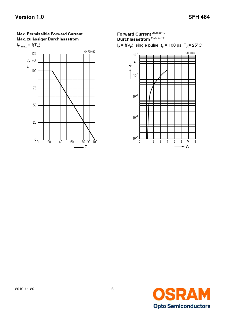 | Seiten / Seite | 14 / 6 — Version 1.0. SFH 484. Max. Permissible Forward Current. Forward Current. … |