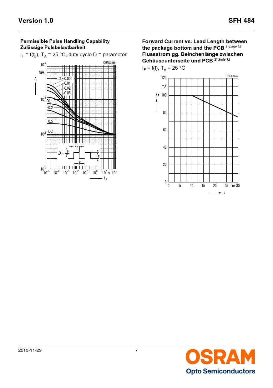 Seiten / Seite14 / 7 — Version 1.0. SFH 484. Permissible Pulse Handling Capability. Forward …