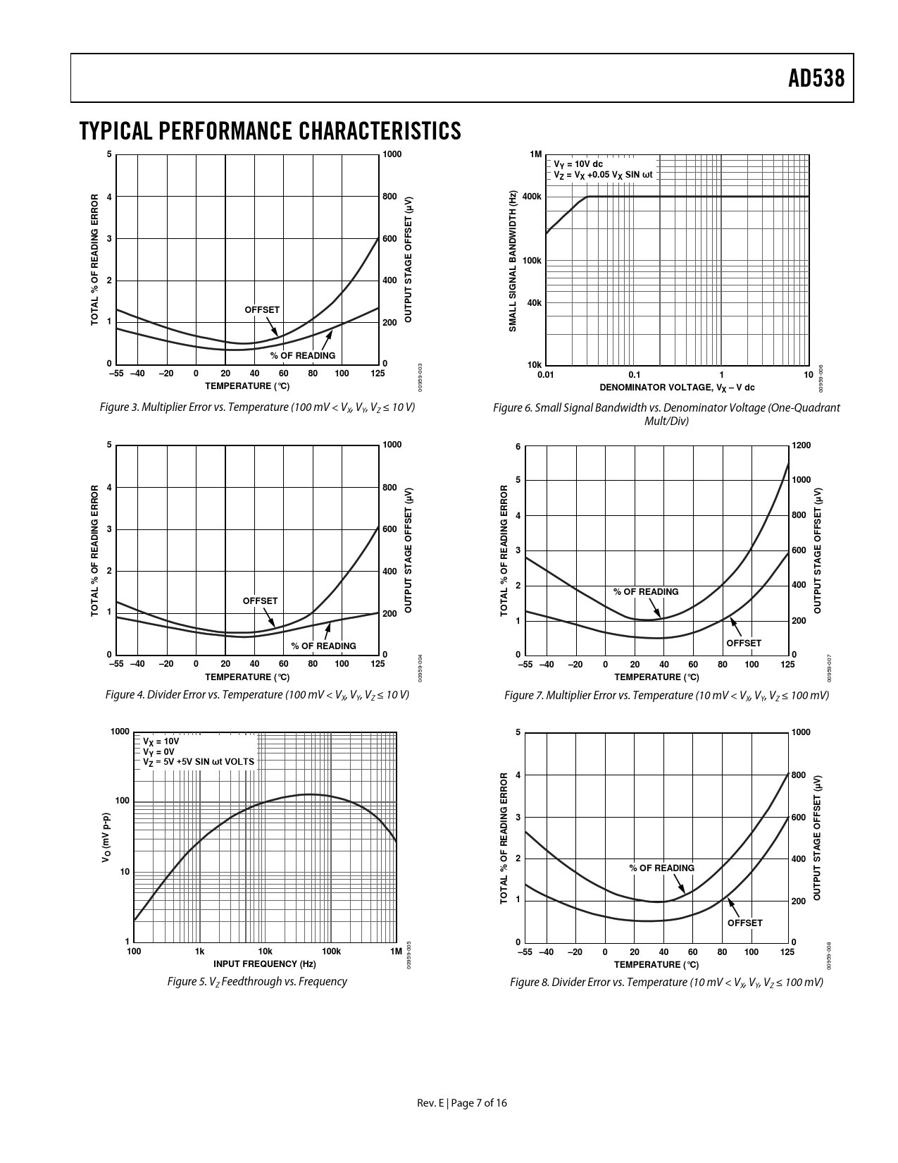 AD538. TYPICAL PERFORMANCE CHARACTERISTICS. 1000. VY = 10V dc VZ = VX +0.05 VX SIN ωt. 800. 400k. H (. T ( E. IDT. G E. 600. IN D A. OFFS. 100k