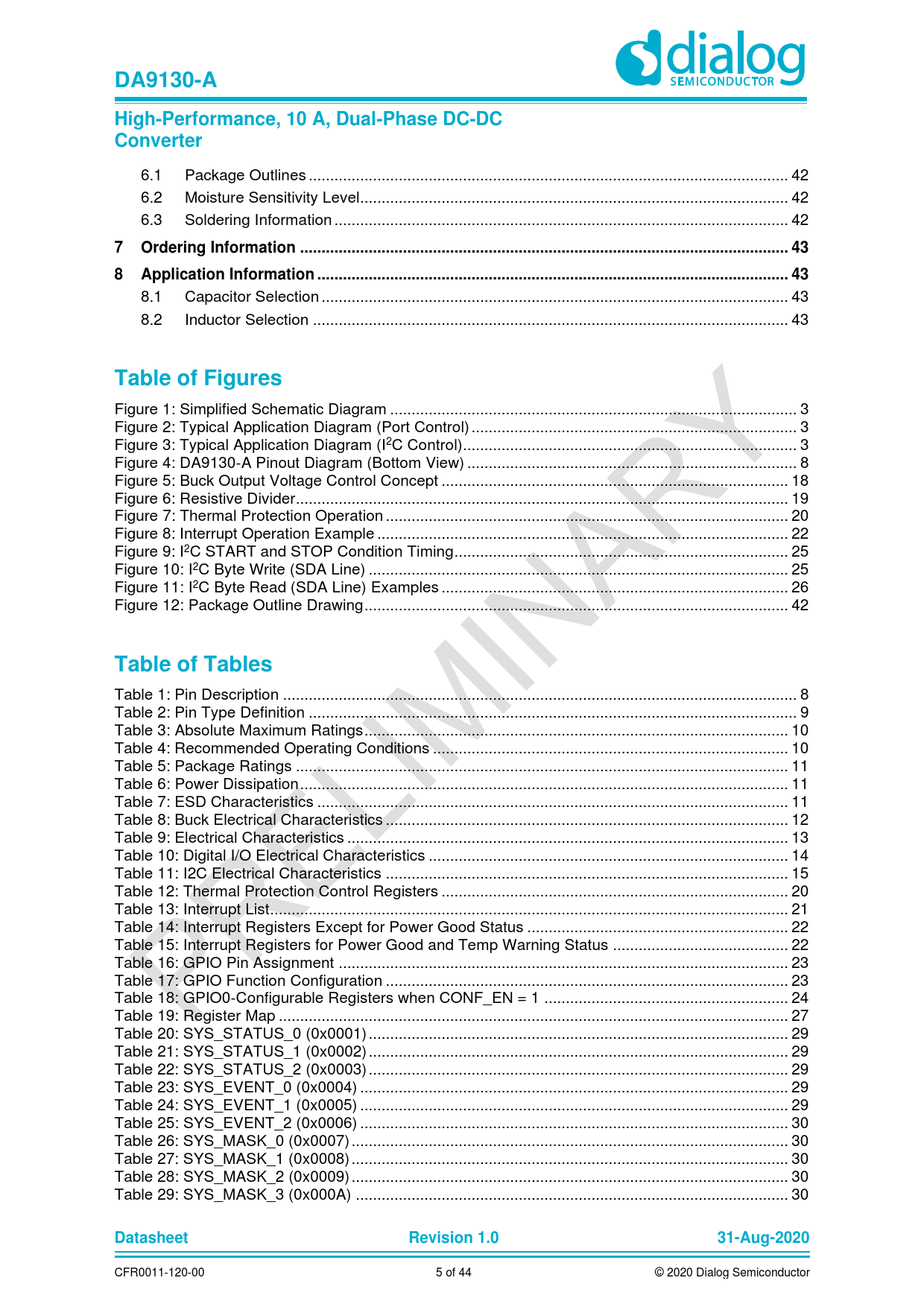 DA9130-A. High-Performance, 10 A, Dual-Phase DC-DC. Converter. Ordering Information .. 43. Application Information .. 43