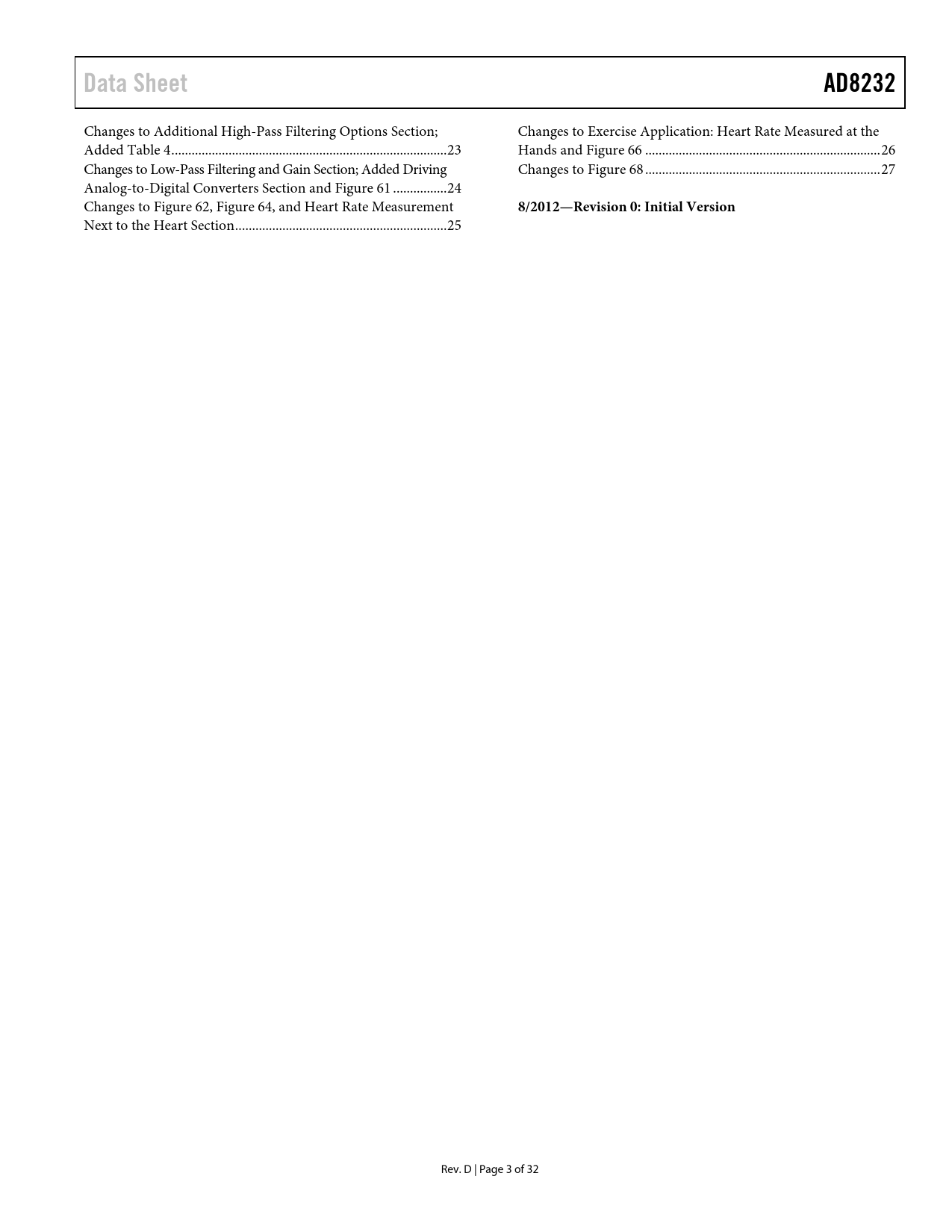 Seiten / Seite32 / 3 — Data Sheet. AD8232. 8/2012—Revision 0: Initial Version