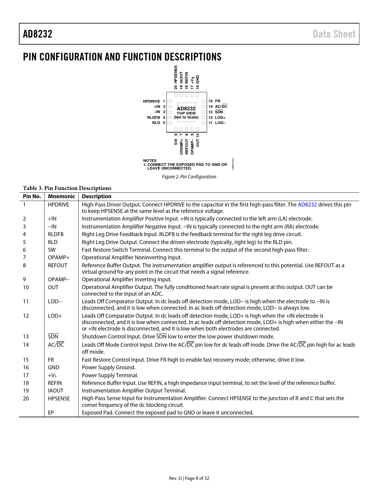 Seiten / Seite32 / 8 — AD8232. Data Sheet. PIN CONFIGURATION AND FUNCTION DESCRIPTIONS. FIN. …