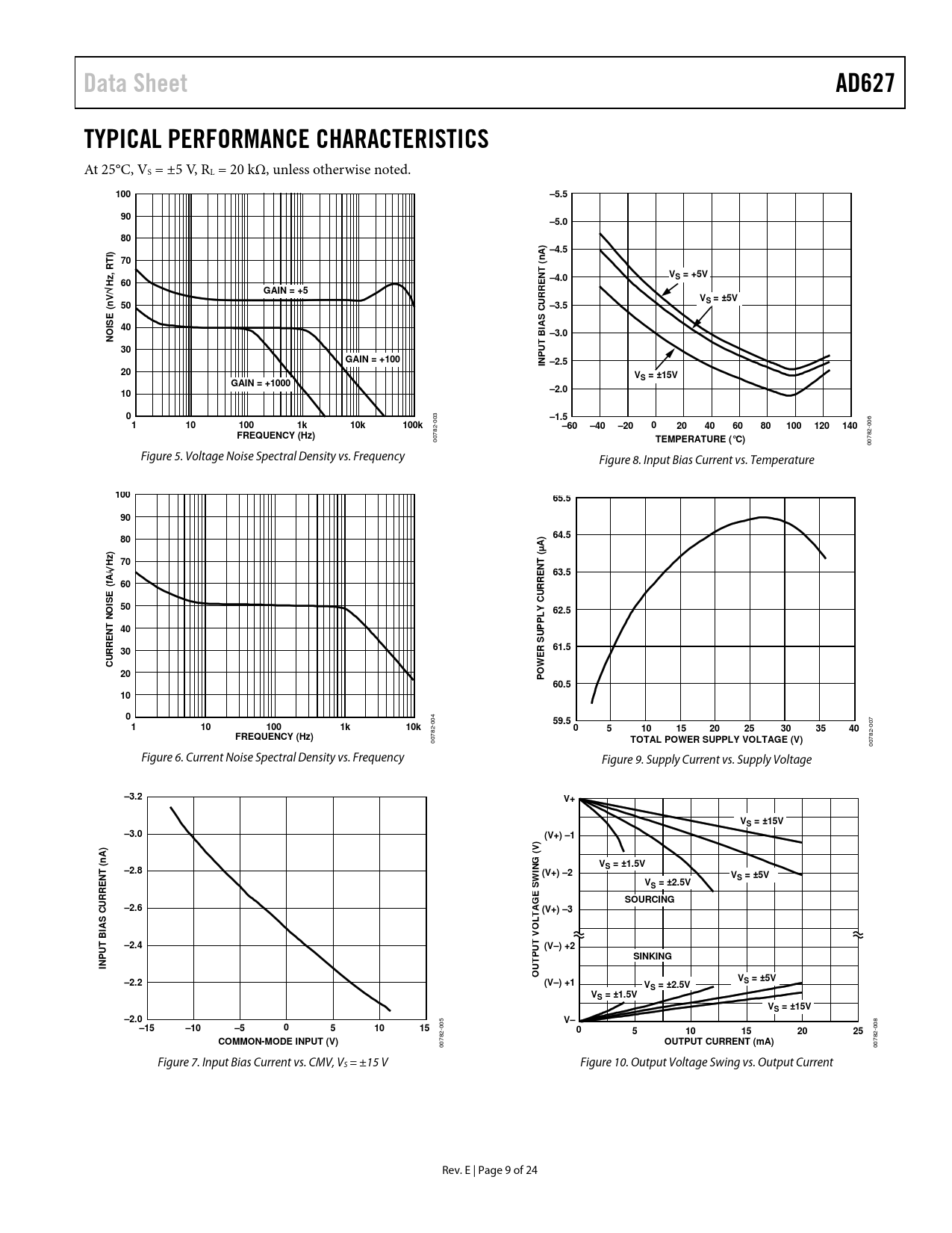 00782- Figure 6. Current Noise Spectral Density vs. Frequency Figure 9. Supply Current vs. Supply Voltage