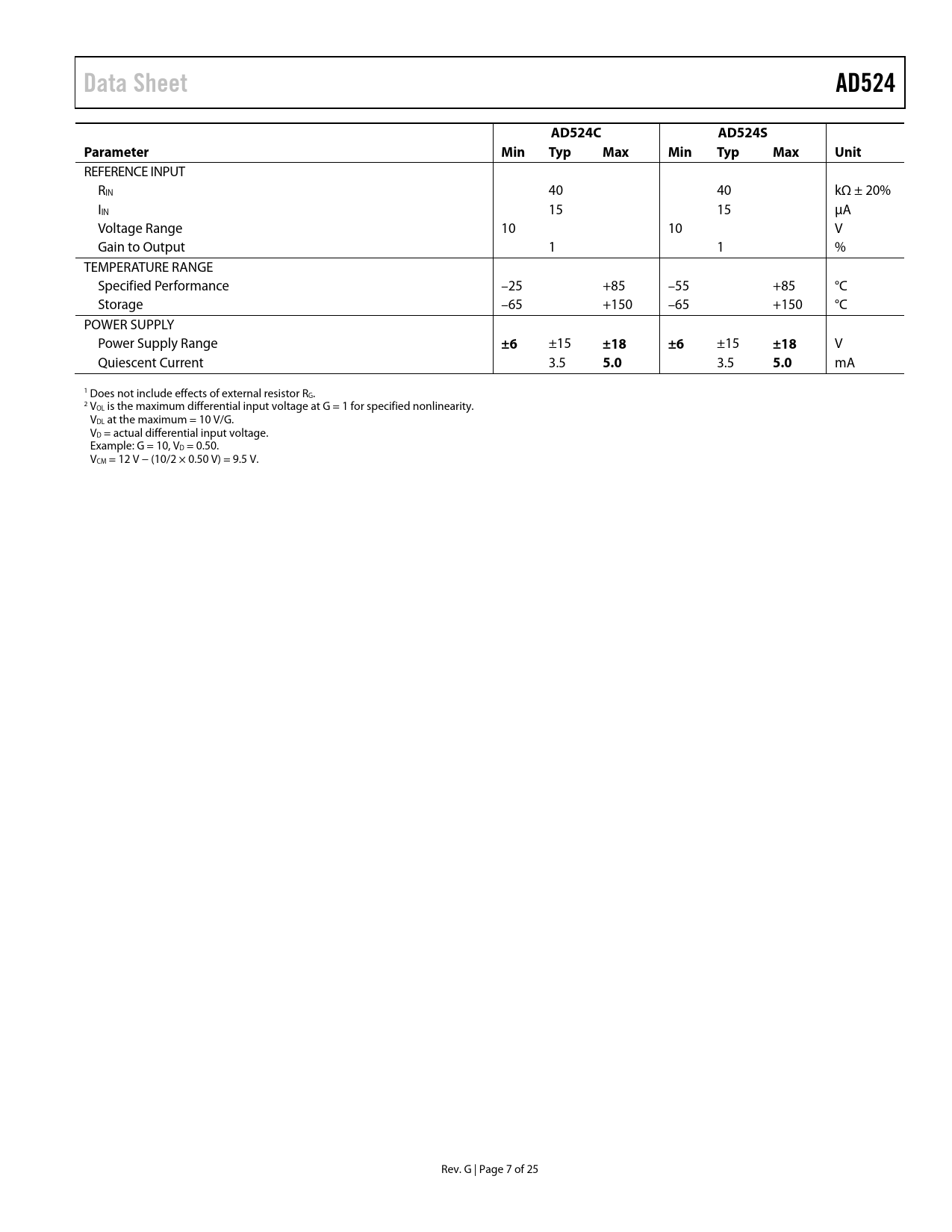 Seiten / Seite25 / 7 — Data Sheet. AD524. AD524C. AD524S. Parameter. Min. Typ. Max. Unit. ±18. …