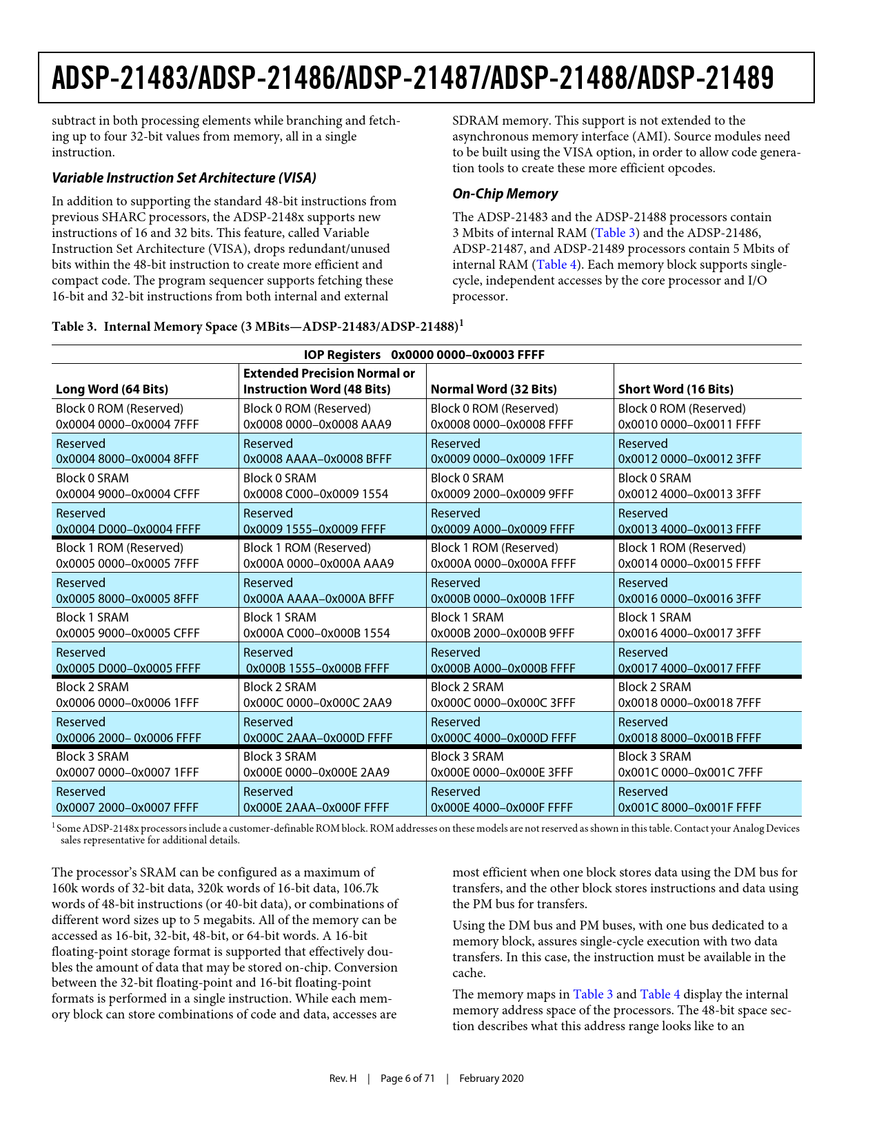 ADSP-21483/ADSP-21486/ADSP-21487/ADSP-21488/ADSP-21489 Variable Instruction Set Architecture (VISA) On-Chip Memory