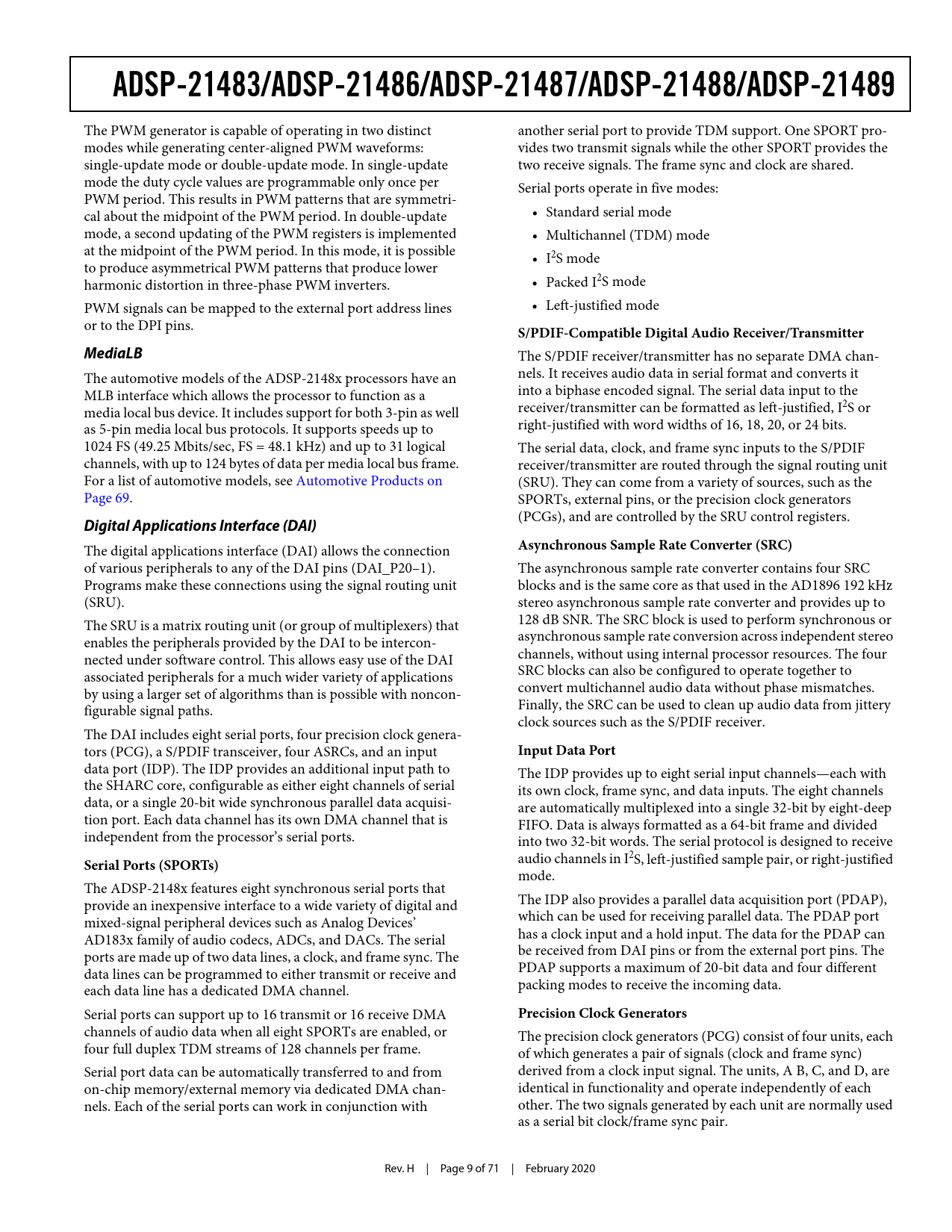 ADSP-21483/ADSP-21486/ADSP-21487/ADSP-21488/ADSP-21489. S/PDIF-Compatible Digital Audio Receiver/Transmitter. MediaLB