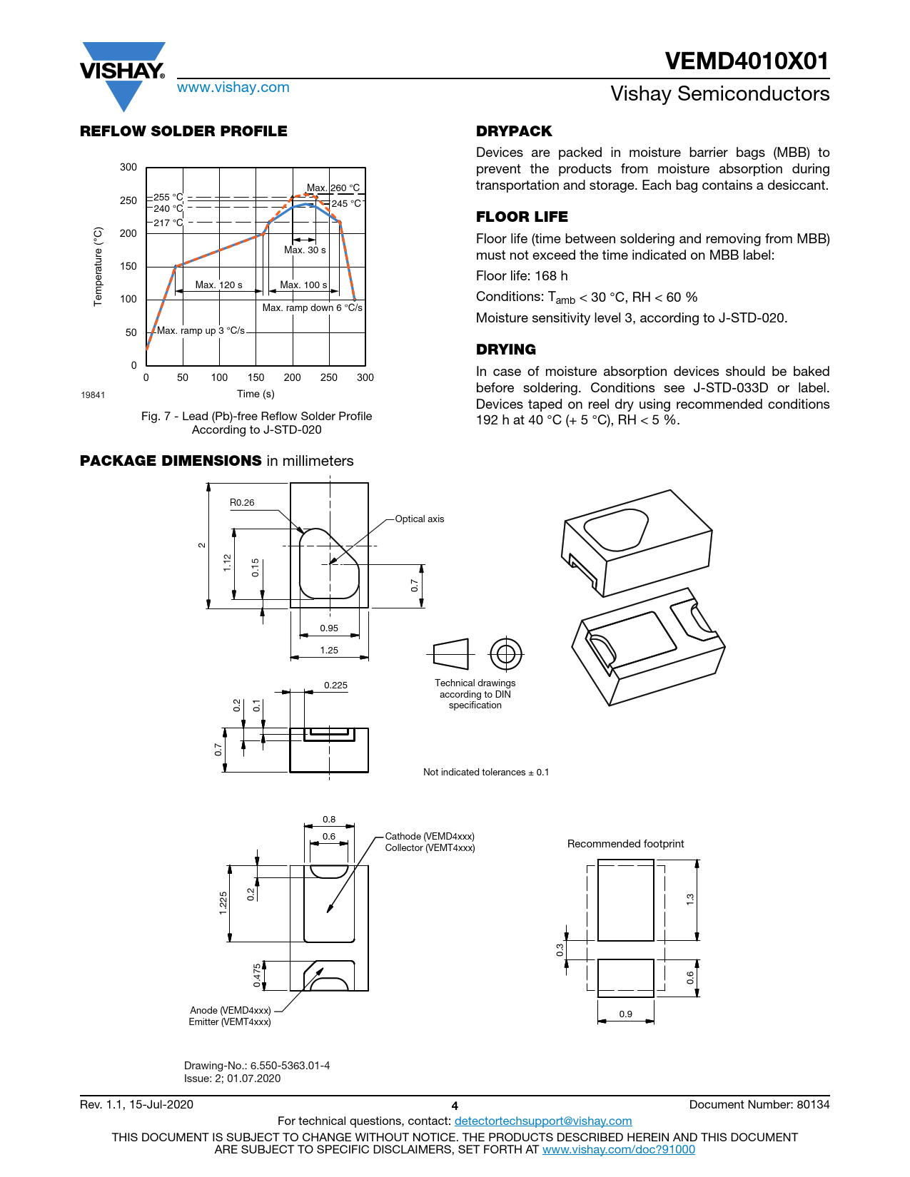 VEMD4010X01 REFLOW SOLDER PROFILE DRYPACK FLOOR LIFE DRYING PACKAGE DIMENSIONS