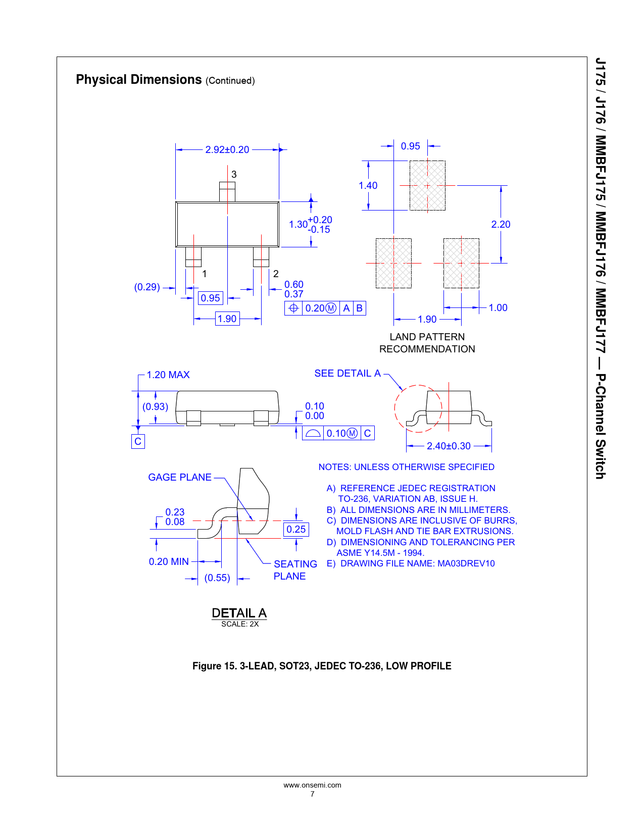 J 175 / J176 / MMBF Physical Dimensions J175 / MMBFJ1 76 / MMBFJ177 — P-Channe l Switch