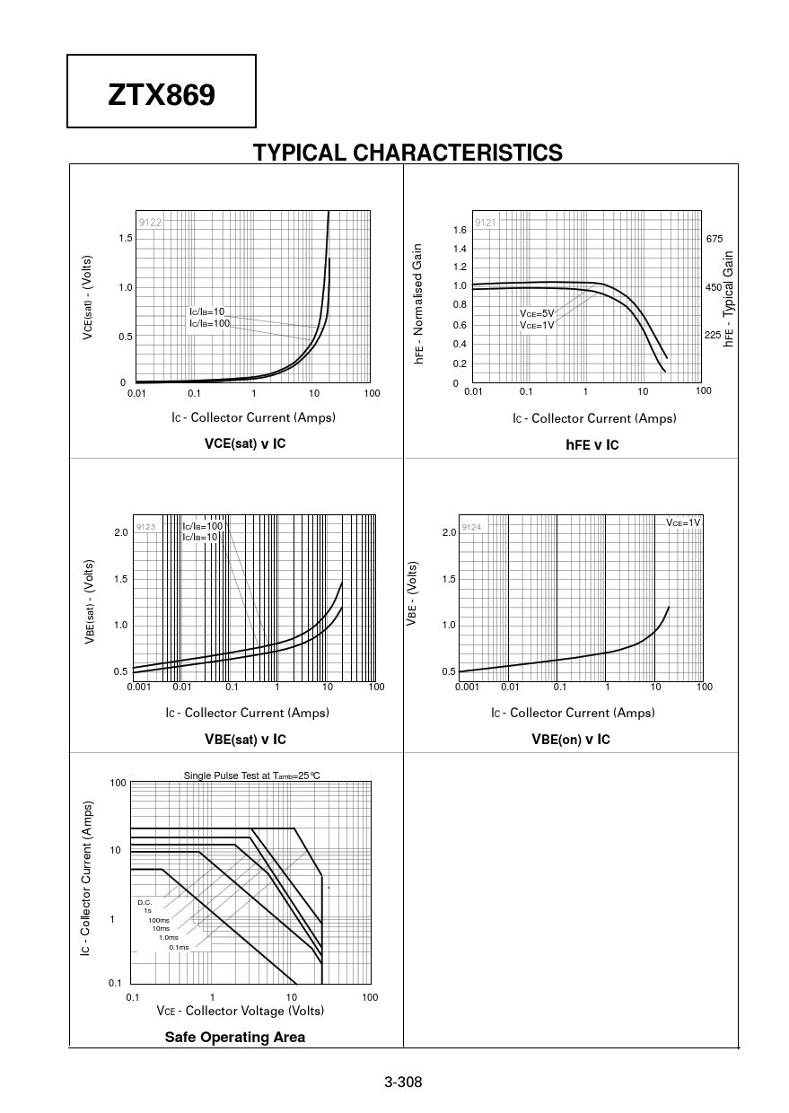 TYPICAL CHARACTERISTICS. VCE(sat) v IC. hFE v IC. VBE(sat) v IC. VBE(on) v IC. Safe Operating Area