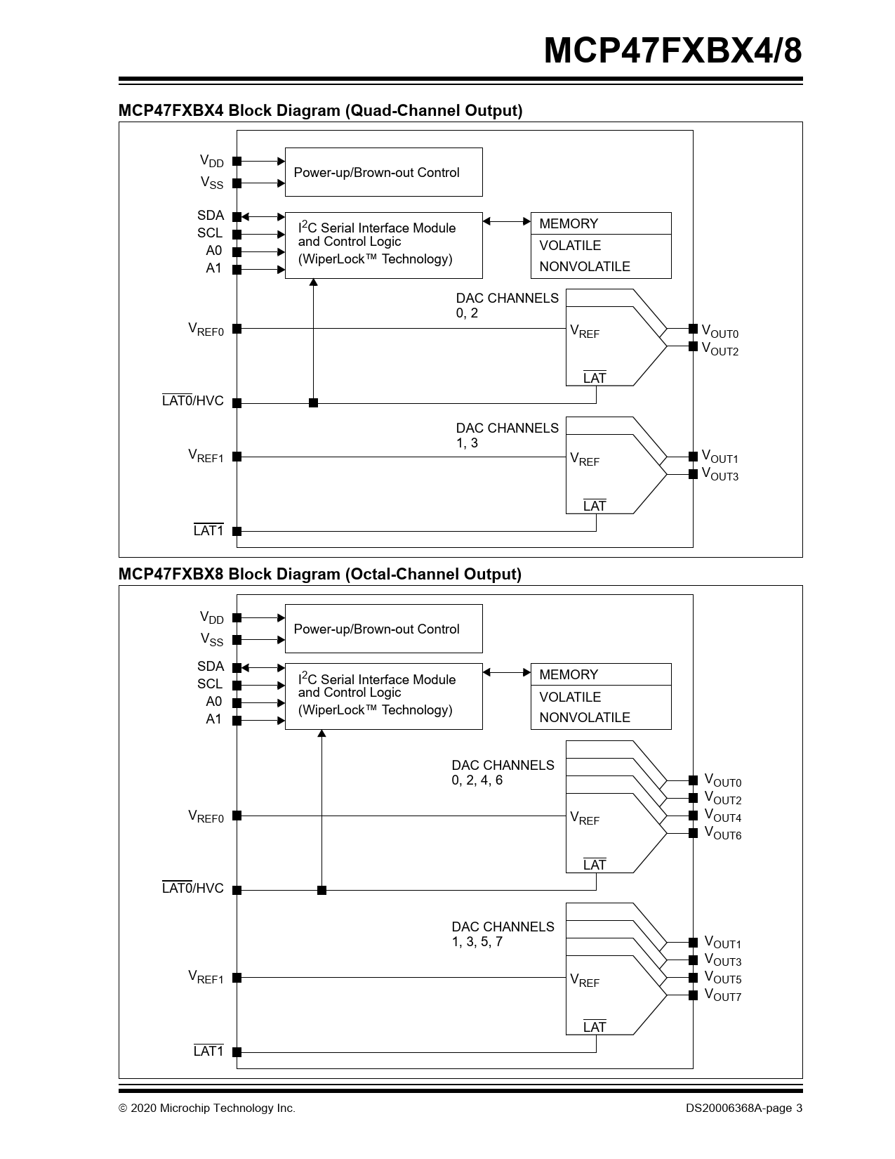MCP47FXBX4/8. MCP47FXBX4 Block Diagram (Quad-Channel Output). VDD. VSS Power-up/Brown-out Control SDA. SCL