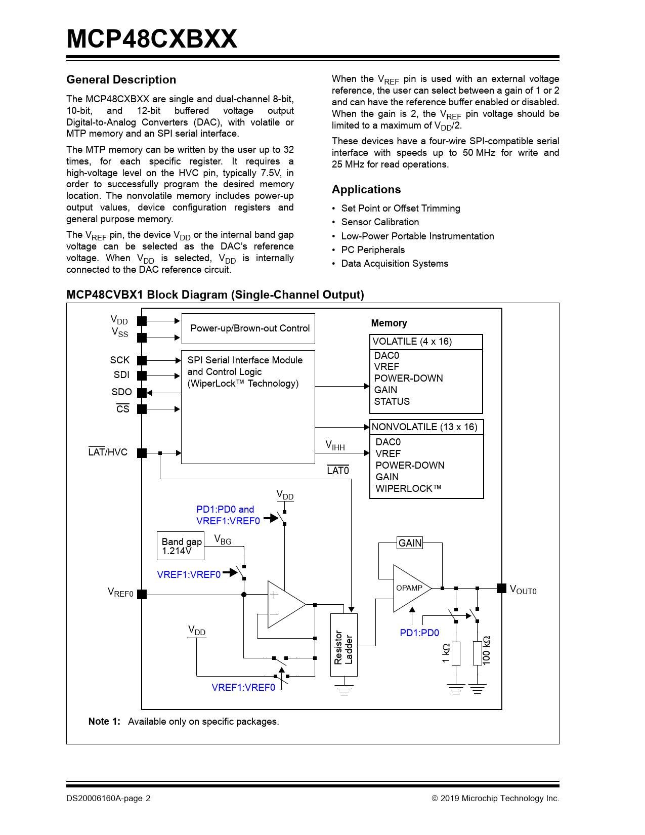 Seiten / Seite106 / 2 — MCP48CXBXX. General Description. Applications. MCP48CVBX1 Block Diagram …
