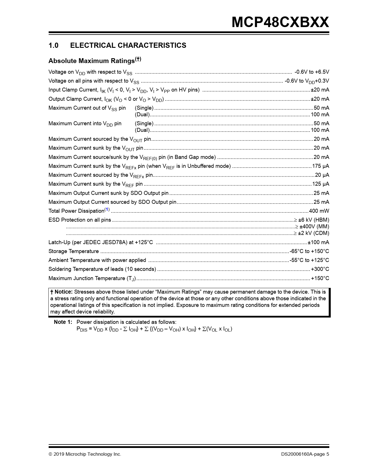 MCP48CXBXX. 1.0. ELECTRICAL CHARACTERISTICS. Absolute Maximum Ratings(†). † Notice:. Note 1: