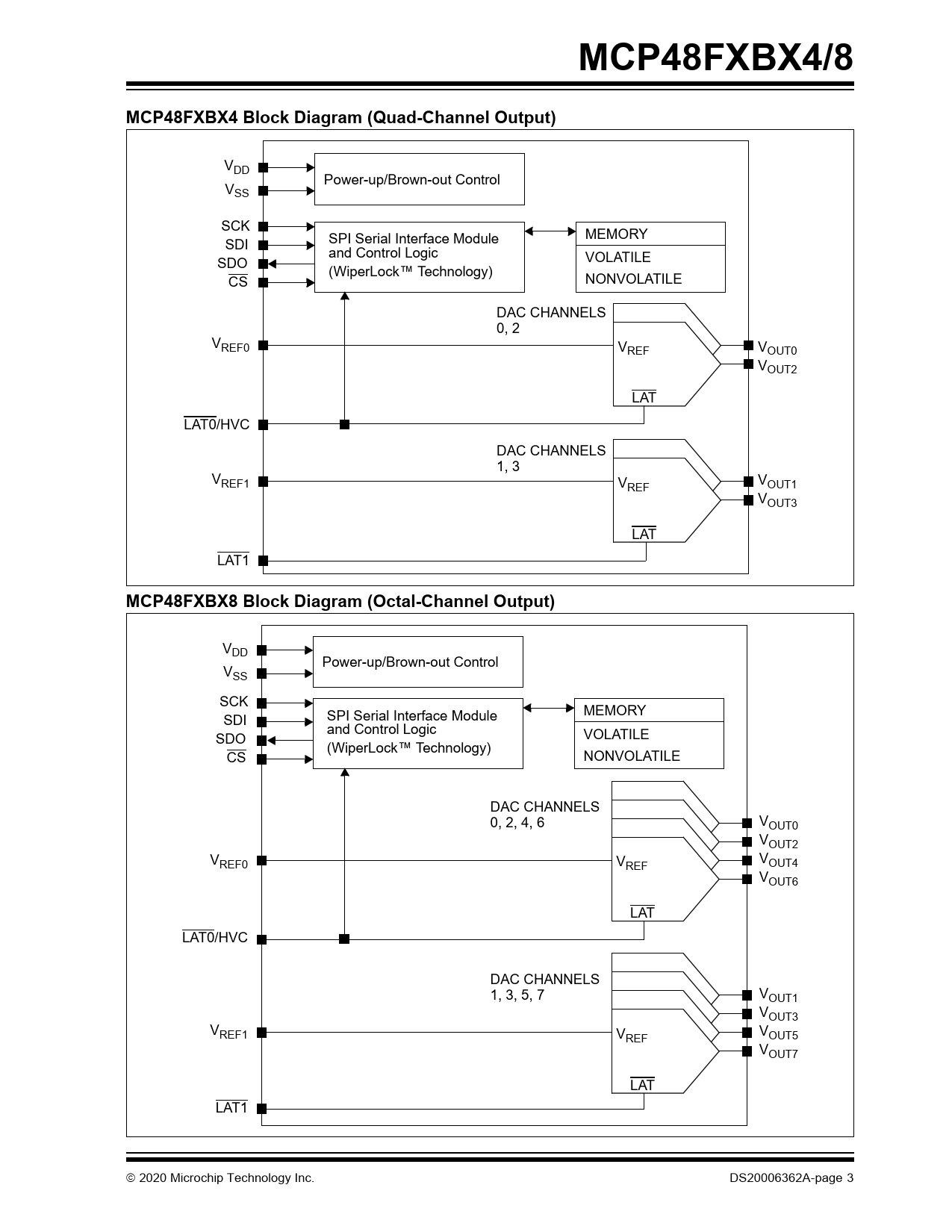 MCP48FXBX4/8. MCP48FXBX4 Block Diagram (Quad-Channel Output). MCP48FXBX8 Block Diagram (Octal-Channel Output)