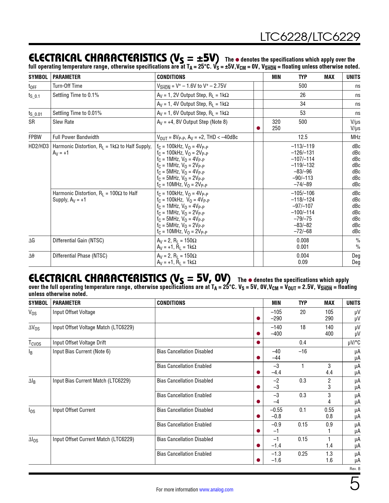 Datasheet LTC6228, LTC6229 (Analog Devices) - 5