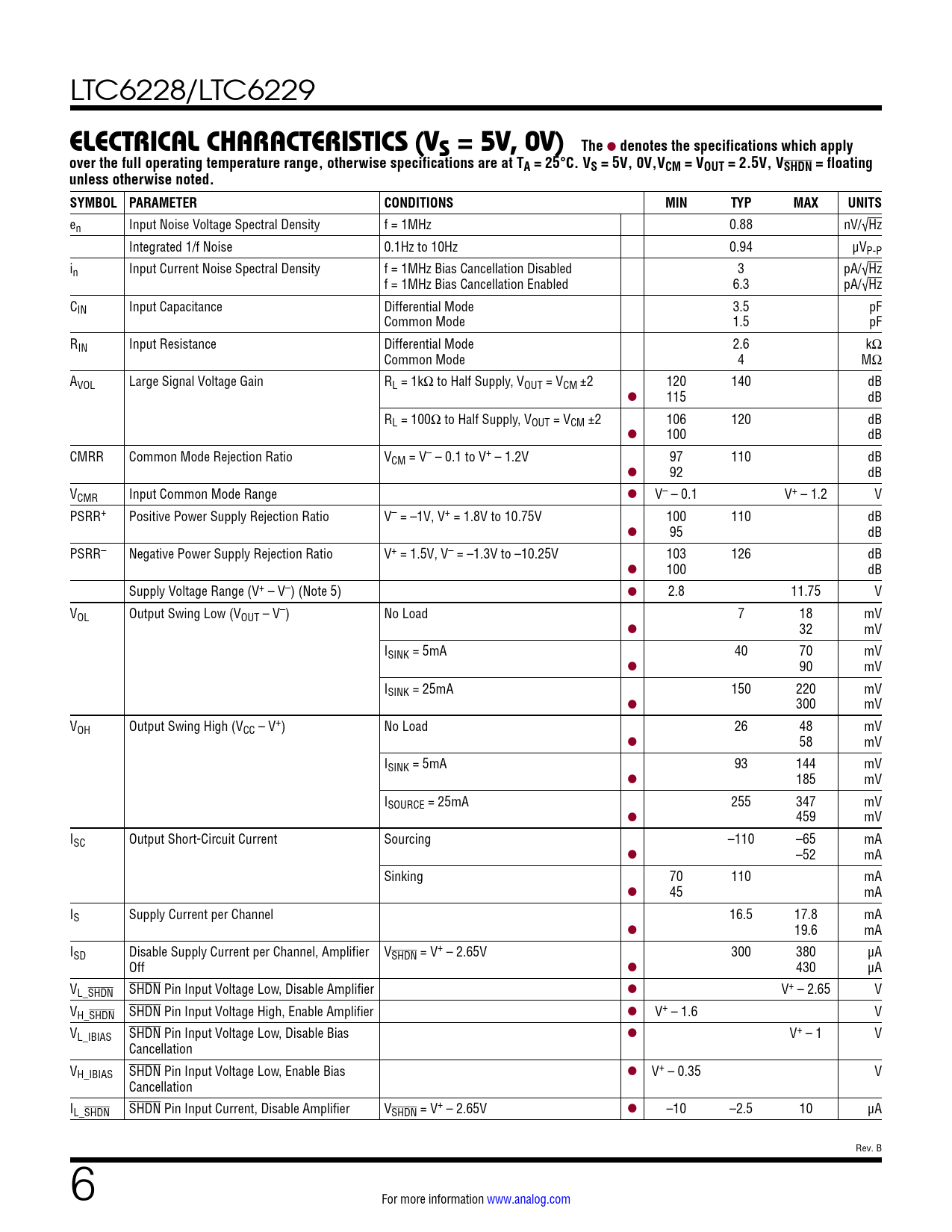 Datasheet LTC6228, LTC6229 (Analog Devices) - 6