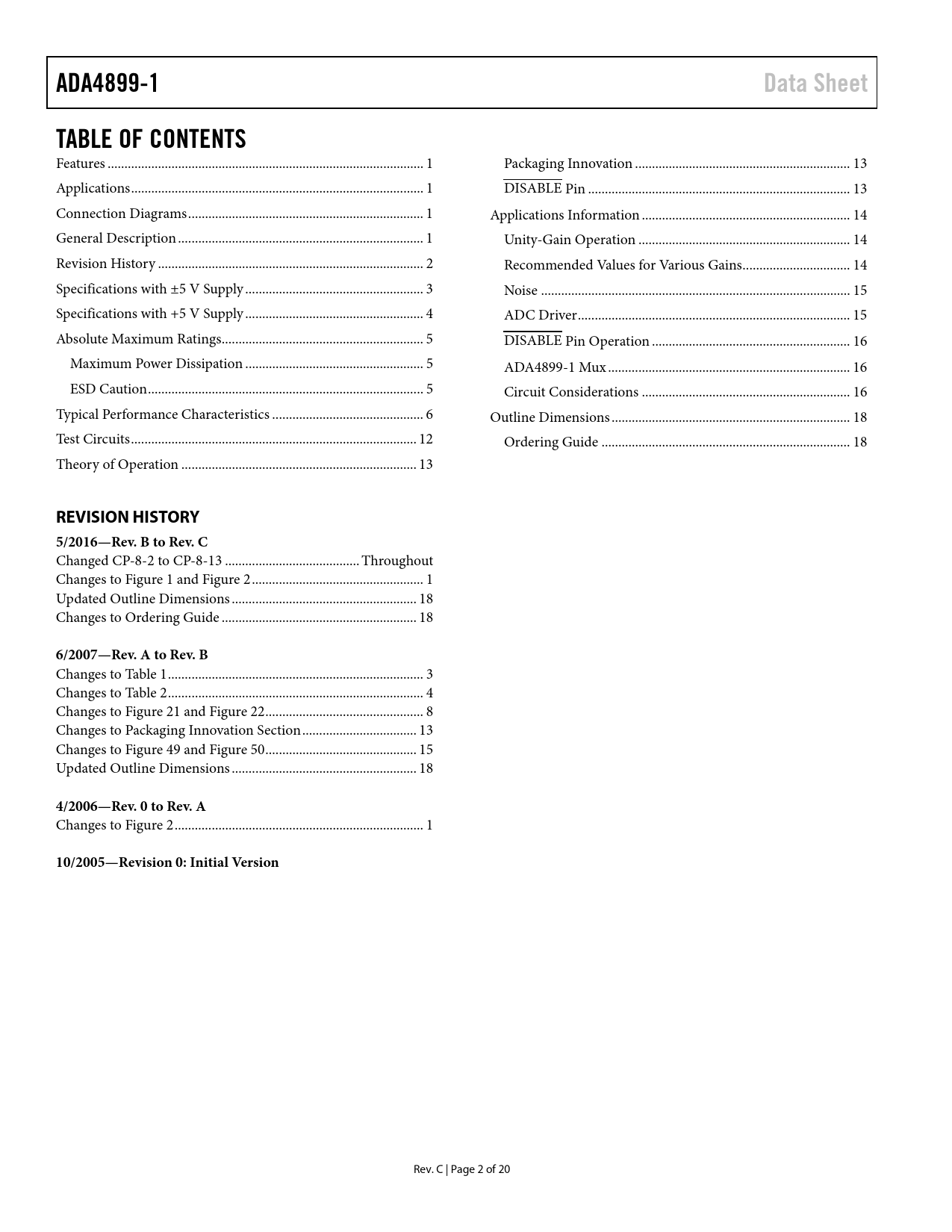 Seiten / Seite20 / 2 — ADA4899-1. Data Sheet. TABLE OF CONTENTS. REVISION HISTORY 5/2016—Rev. B …