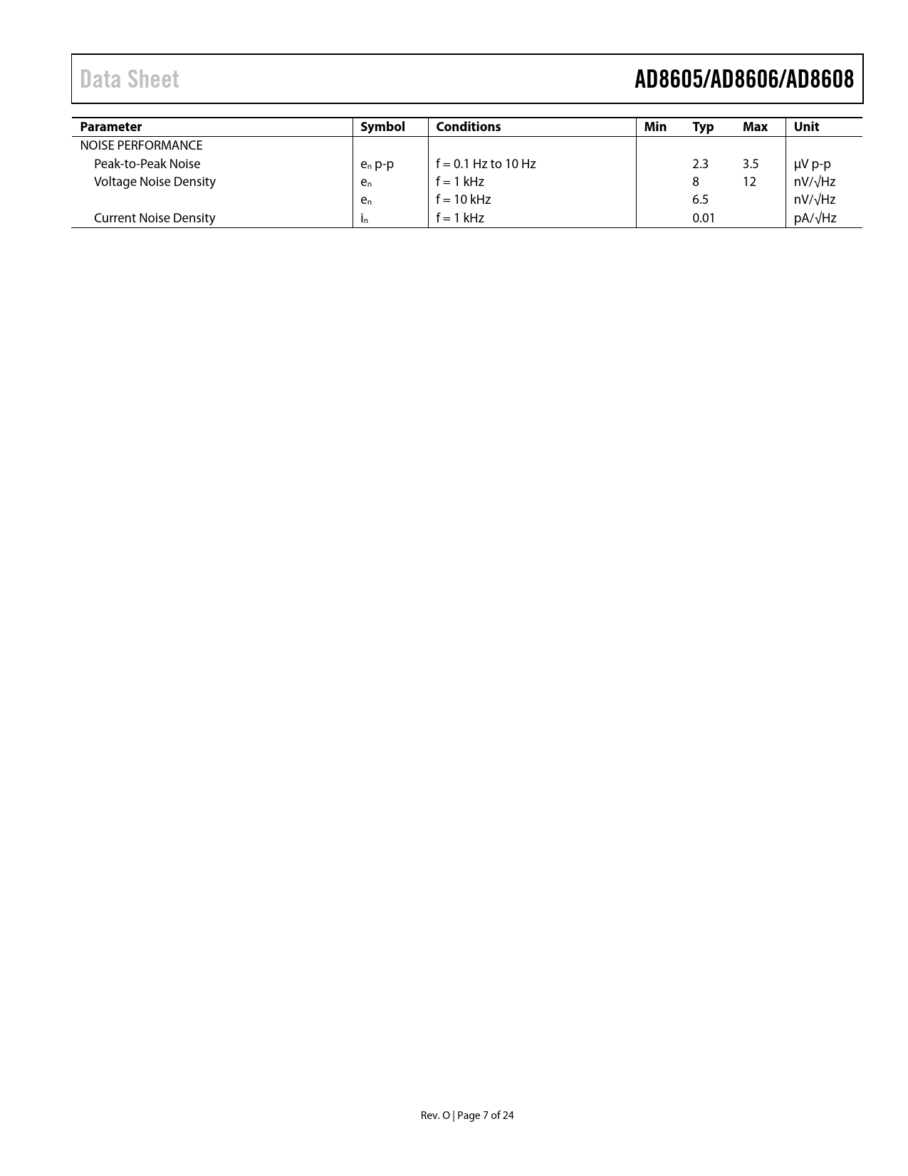 Seiten / Seite24 / 7 — Data Sheet. AD8605/AD8606/AD8608. Parameter. Symbol. Conditions. Min. …