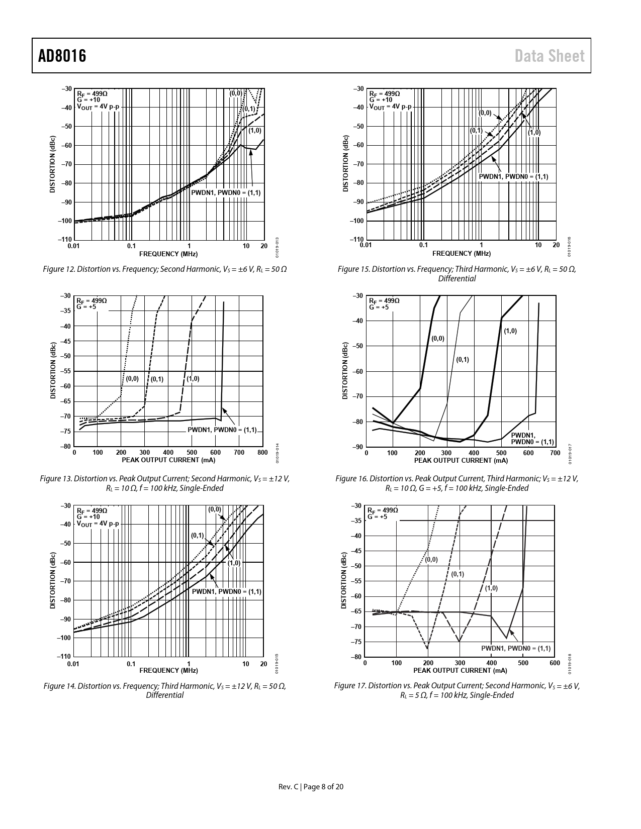 AD8016. Data Sheet. –30. (0,0). F = 499Ω. RF = 499Ω. G = +10. –40 VOUT = 4V p-p. (0,1). –50. (1,0). B –60. d –60. –70. TION. TION –70