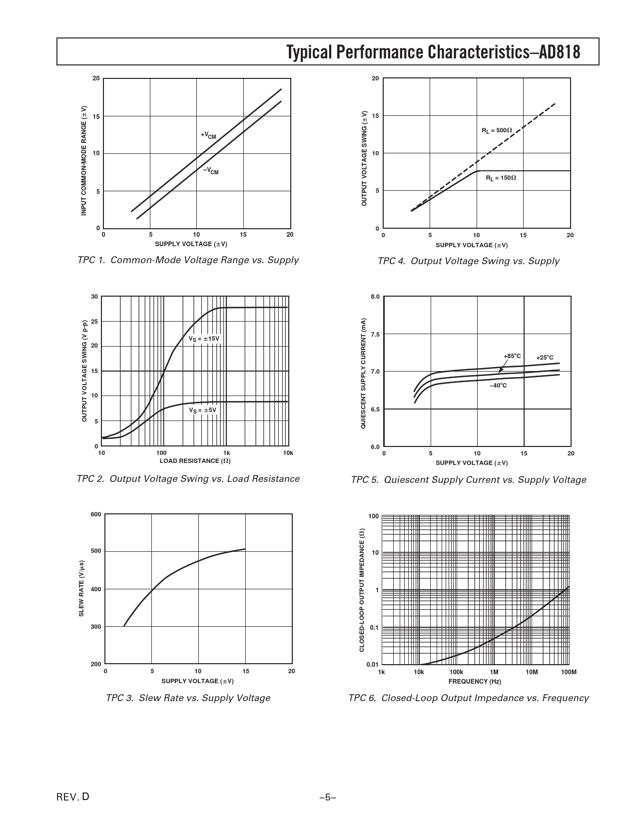 TPC 3. Slew Rate vs. Supply Voltage TPC 6. Closed-Loop Output Impedance vs. Frequency REV. D –5– Document Outline Untitled