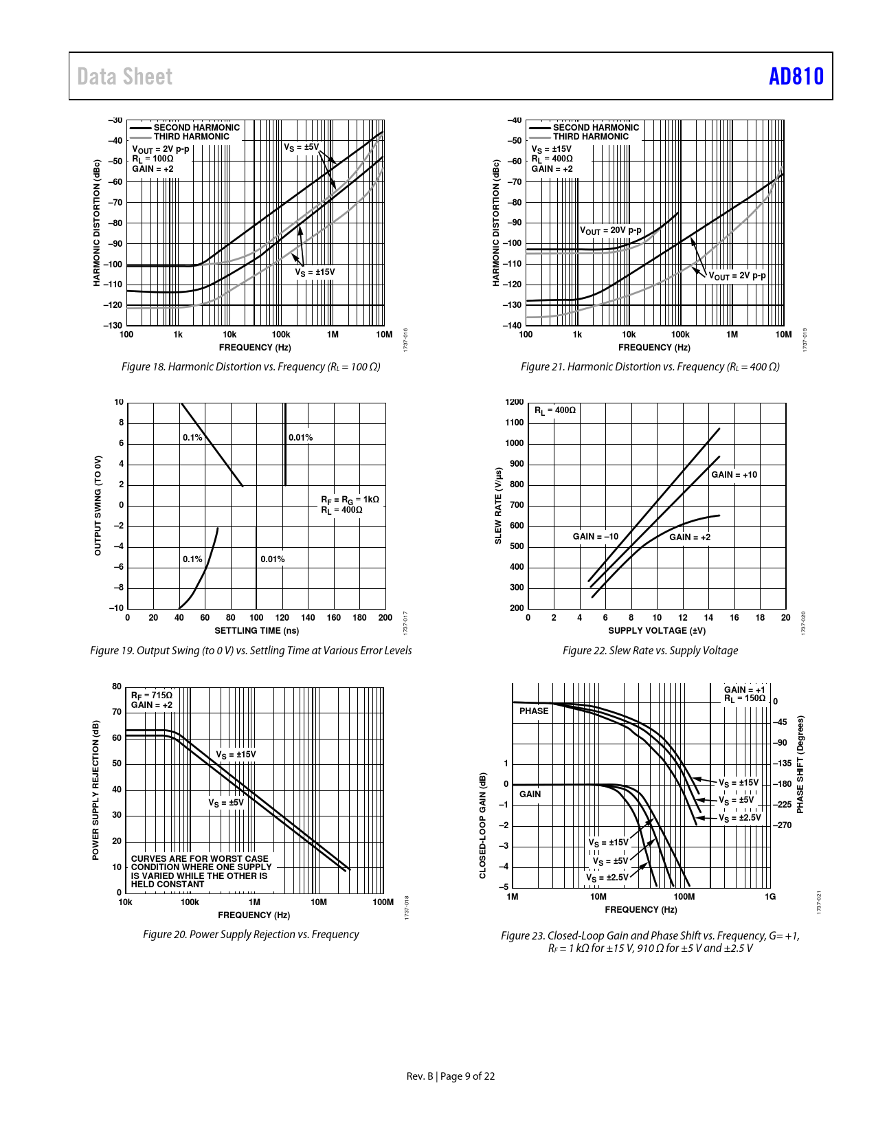 Data Sheet. AD810. –30. –40. SECOND HARMONIC. THIRD HARMONIC. –50. OUT = 2V p-p. S = ±5V. VS = ±15V. RL = 100Ω. –60. RL = 400Ω. Bc). GAIN = +2. –70