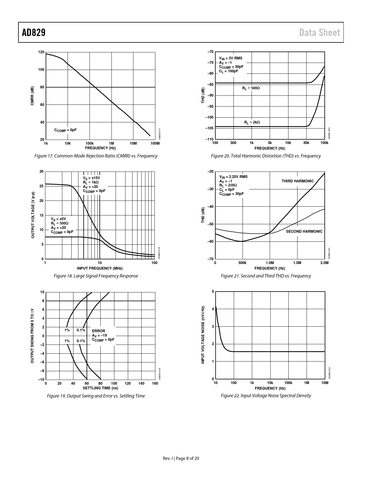 AD829. Data Sheet. 120. –70. VIN = 3V RMS. –75. AV = –1 CCOMP = 30pF. 100. –80. L = 100pF. –85. L = 500Ω. d –90 HD ( T. CMRR (dB). –95. –100. RL = 2kΩ