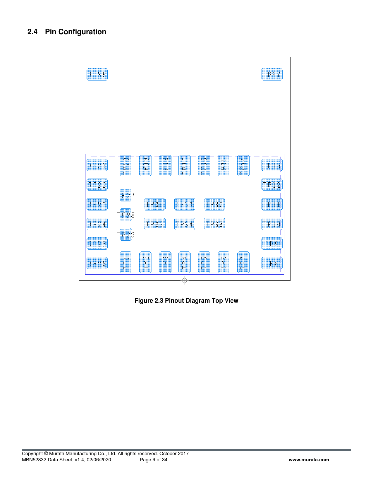 2.4 Pin Configuration. Figure 2.3 Pinout Diagram Top View. www.murata.com