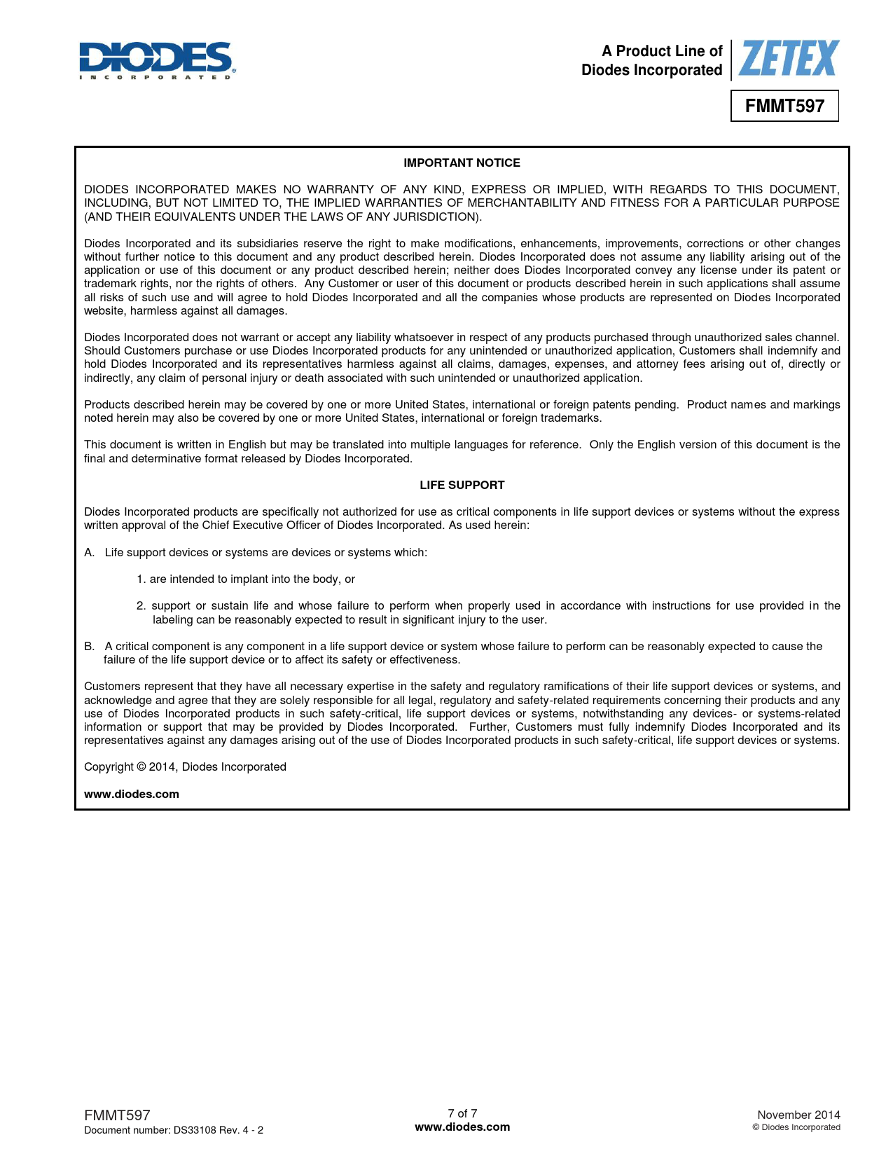 | Seiten / Seite | 7 / 7 — A Product Line of. Diodes Incorporated. FMMT597. IMPORTANT NOTICE. LIFE … |