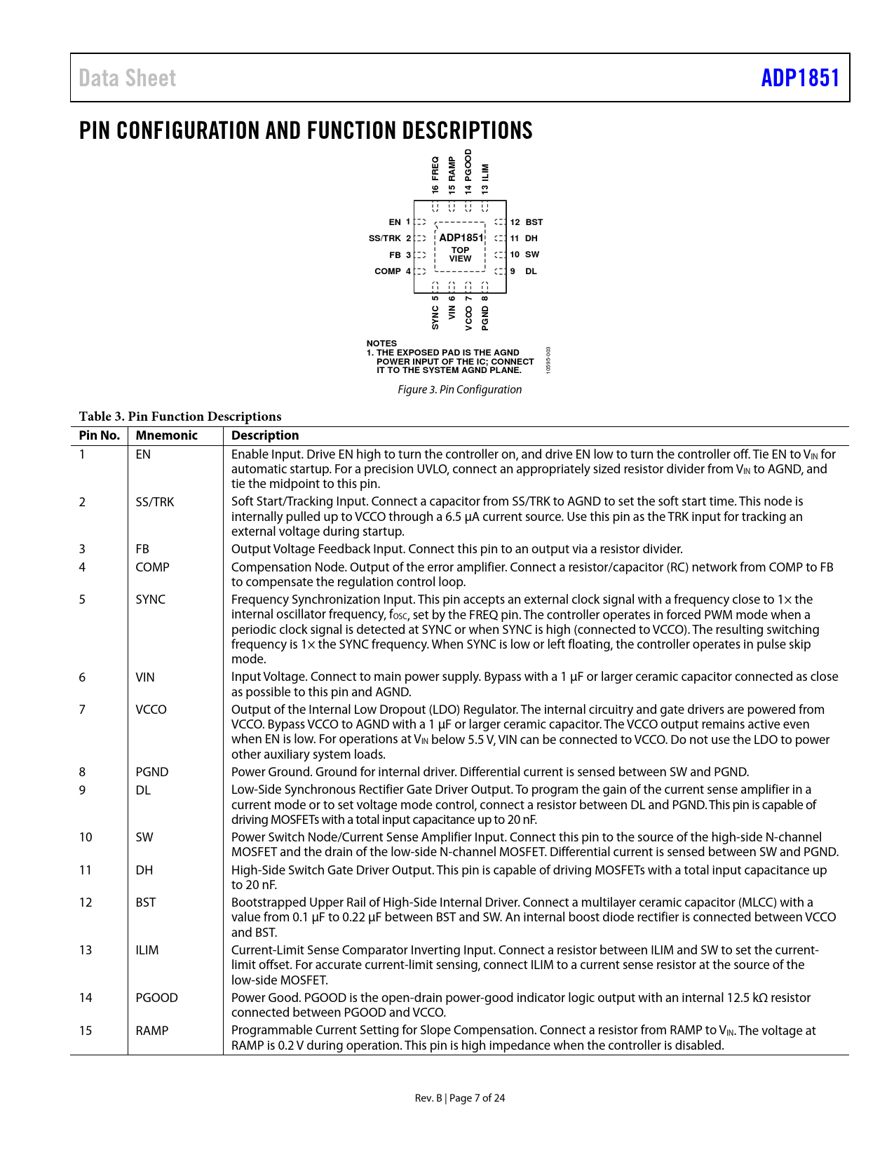 Data Sheet. ADP1851. PIN CONFIGURATION AND FUNCTION DESCRIPTIONS. GOO. EN 1. 12 BST. SS/TRK 2. 11 DH. TOP. FB 3. 10 SW. VIEW. COMP 4. NOTES