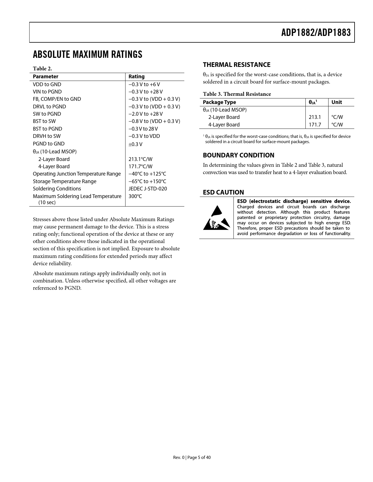 ADP1882/ADP1883 ABSOLUTE MAXIMUM RATINGS THERMAL RESISTANCE Table 2. Parameter Rating