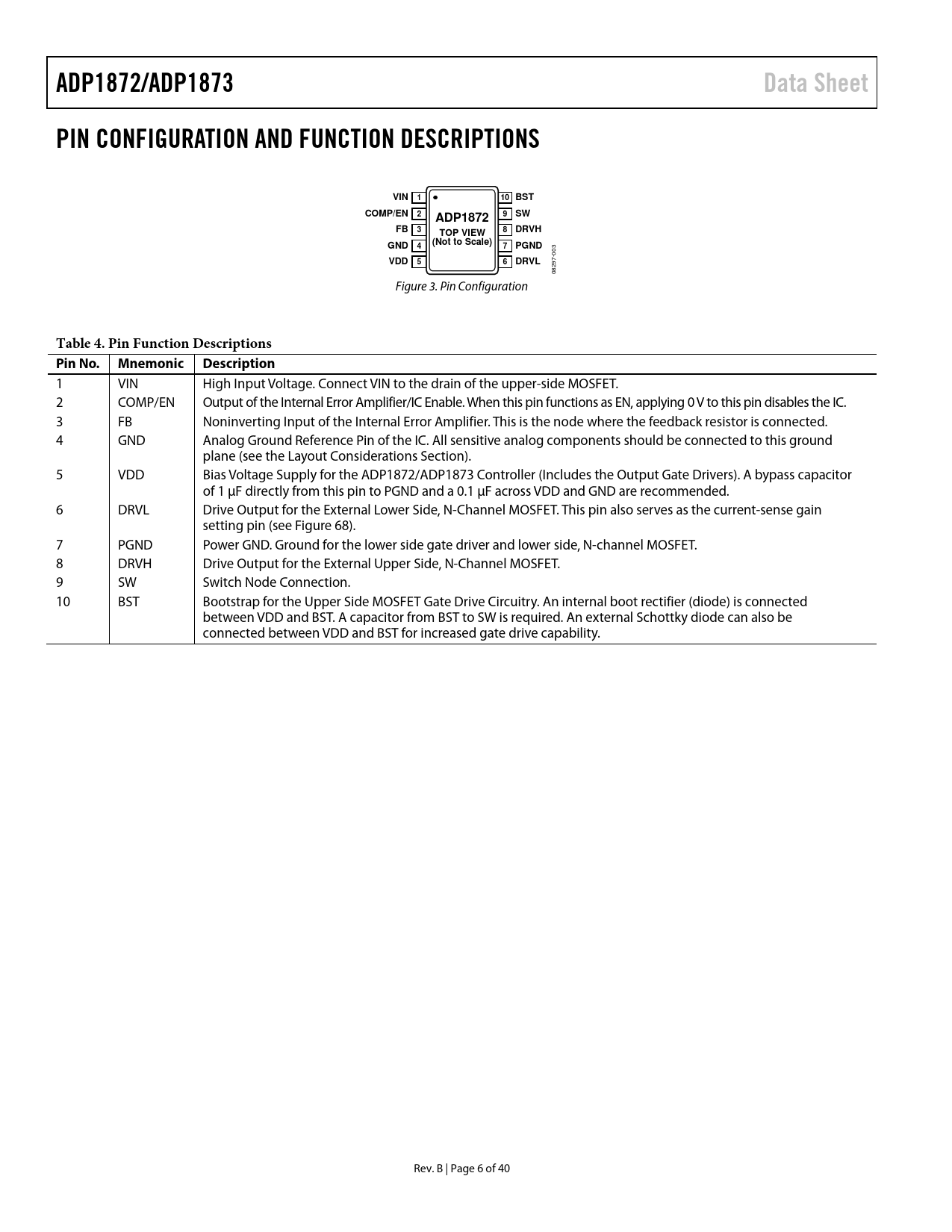 Seiten / Seite40 / 6 — ADP1872/ADP1873. Data Sheet. PIN CONFIGURATION AND FUNCTION DESCRIPTIONS. …