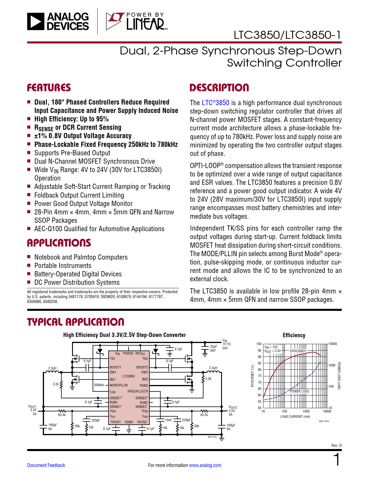 Datasheet LTC3850, LTC3850-1 Analog Devices, Revision: D